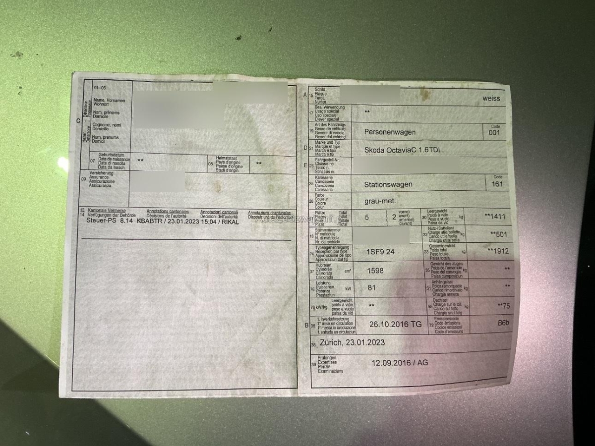 | Fahrzeugausweis | Vorhanden |