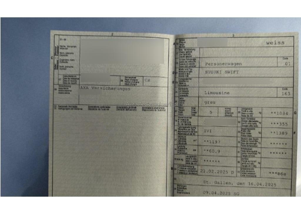 | Fahrzeugausweis | Vorhanden |