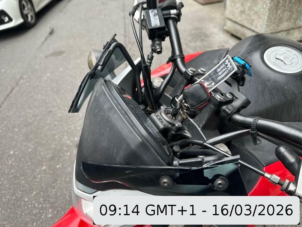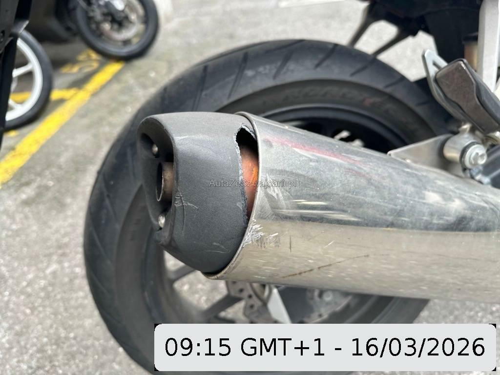 | Beschädigungen | Auspufftopf, Aussenspiegel rechts, Front, Fussraster rechts, Gabelholm, Griff rechts, Lenkanschlag, Lenker, Schutzblech vorne, Seite rechts, Windschutzscheibe |