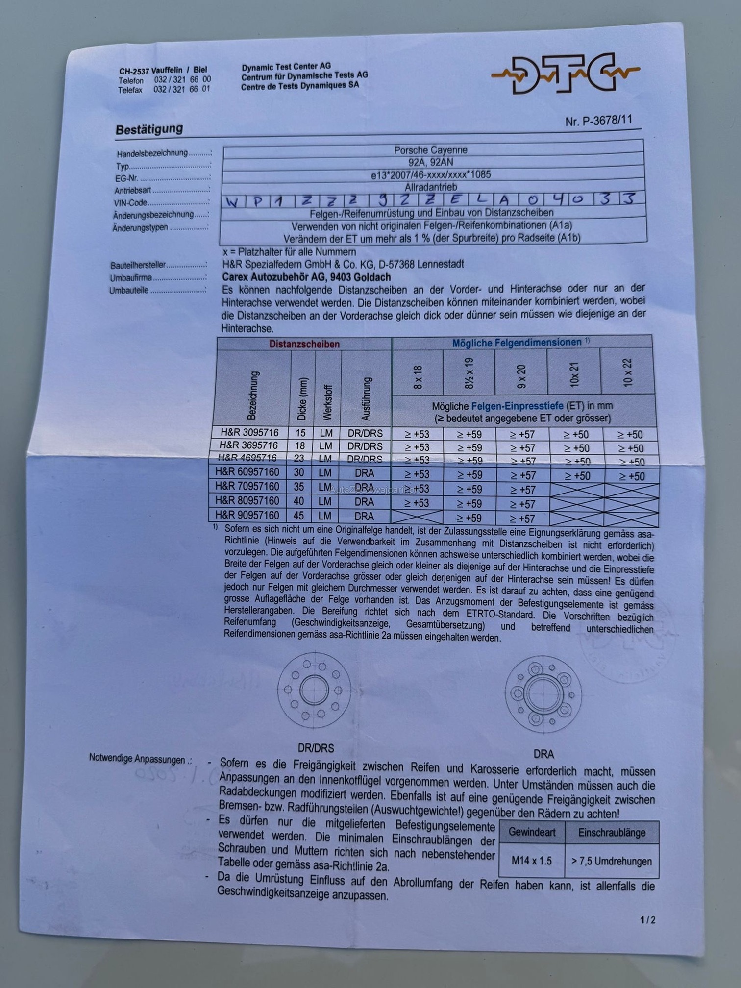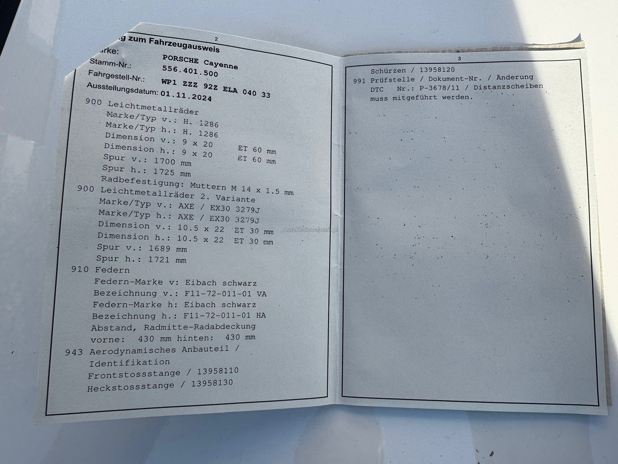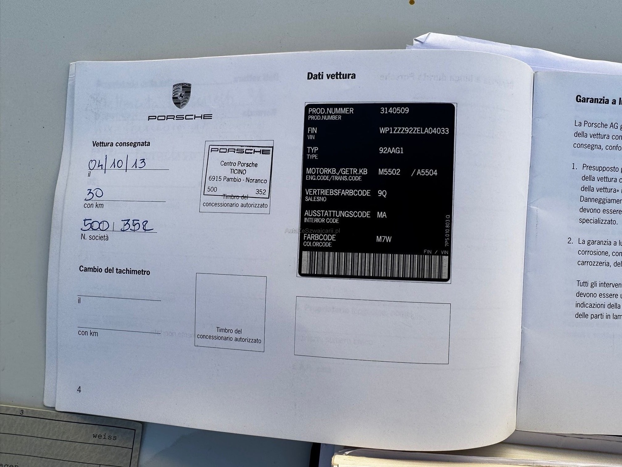 | VIN | WP1XXX |