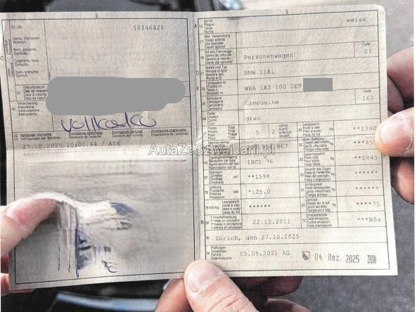 | Condition_and_Equipment | Zustand Fahrzeug ist fahrbar. Bereifung Fahrzeug wird mit Winterräder abgegeben. Sonstiges Fahrzeugdokumente vorhanden. Schlüssel Nur ein Schlüssel vorhanden. Kategorie Das Fahrzeug wird vom Besitzer noch benutzt. --- Front Front eingedrückt. Front links eingedrückt. Front rechts eingedrückt. Kotflügel vorne links eingedrückt. Motorhaube eingedrückt. Frontblech/Maskenblech eingedrückt. Motor Klimakondensator ist eingedrückt. Elektrik Risiko Steuergeräte. Risiko Scheinwerfer. Weitere Beschädigungen -Stossfänger hinten leicht deformiert. -Leichte Delle auf dem Dach und der rechten Seite. -Felgen verkratzt. --- Serienaustattung Klimaanlage inkl. Mikrofilter Fahrer und Beifahrer-Airbag Seitenairbag für Fahrer und Beifahrer Radio BMW Business CD Elektrische Fensterheber Aussenspiegel elektrisch verstellbar Nebelscheinwerfer vorne Dynamische Stabilitäts-Control DSC Cornering Brake Control CBC Sport-Lederlenkrad Sportsitze für Fahrer und Beifahrer Bordcomputer Uni-Lackierung Reifenpannen-Anzeige Kopfairbags vorne + hinten Dynamische Traktions-Control DTC Armauflage vorn verschiebbar Lenksäule mit Höhen- und Längseinstellung ABS Antiblockiersystem inklusive Bremsassistent Auto Start Stopp Funktion Interieurleisten schwarz hochglänzend Rücksitzlehne geteilt umklappbar 40/20/40 Keine Gewähr auf die Angaben der Serienausstattungen Leichtmetallräder Sternspeiche 376 Akzentleisten korallrot matt Sonderausstattung Klimaautomatik inkl. Mikrofilter Lordosenstütze für Fahrer und Beifahrer Sitzheizung für Fahrer und Beifahrer Innenspiegel automatisch abblendbar Innen- und Aussenspiegel automatisch abblendbar Regensensor Xenon-Licht Pack Ablage Hochglanz Shadow-Line Navigationssystem Professional Scheinwerfer-Waschanlage Adaptives Kurvenlicht Multifunktions-Lenkrad Pack Licht Park Distance Control PDC vorn und hinten Geschwindigkeitsregelung mit Bremsfunktion Fernlichtassistent Rückfahrkamera Digital audio DAB-Tuner Bereifung mit Notlaufeigenschaft Parkassistent Sportlenkung variabel Freisprecheinrichtung mit USB-Schnittstelle Instrumentenkombination/ erweitert Leichtmetallräder Turbinenstyling 381 BMW Live Akzentleisten oxidsilber matt Spurverlassenswarnung inkl. Auffahrwarner Speed Limit Info inkl. No Passing Info |