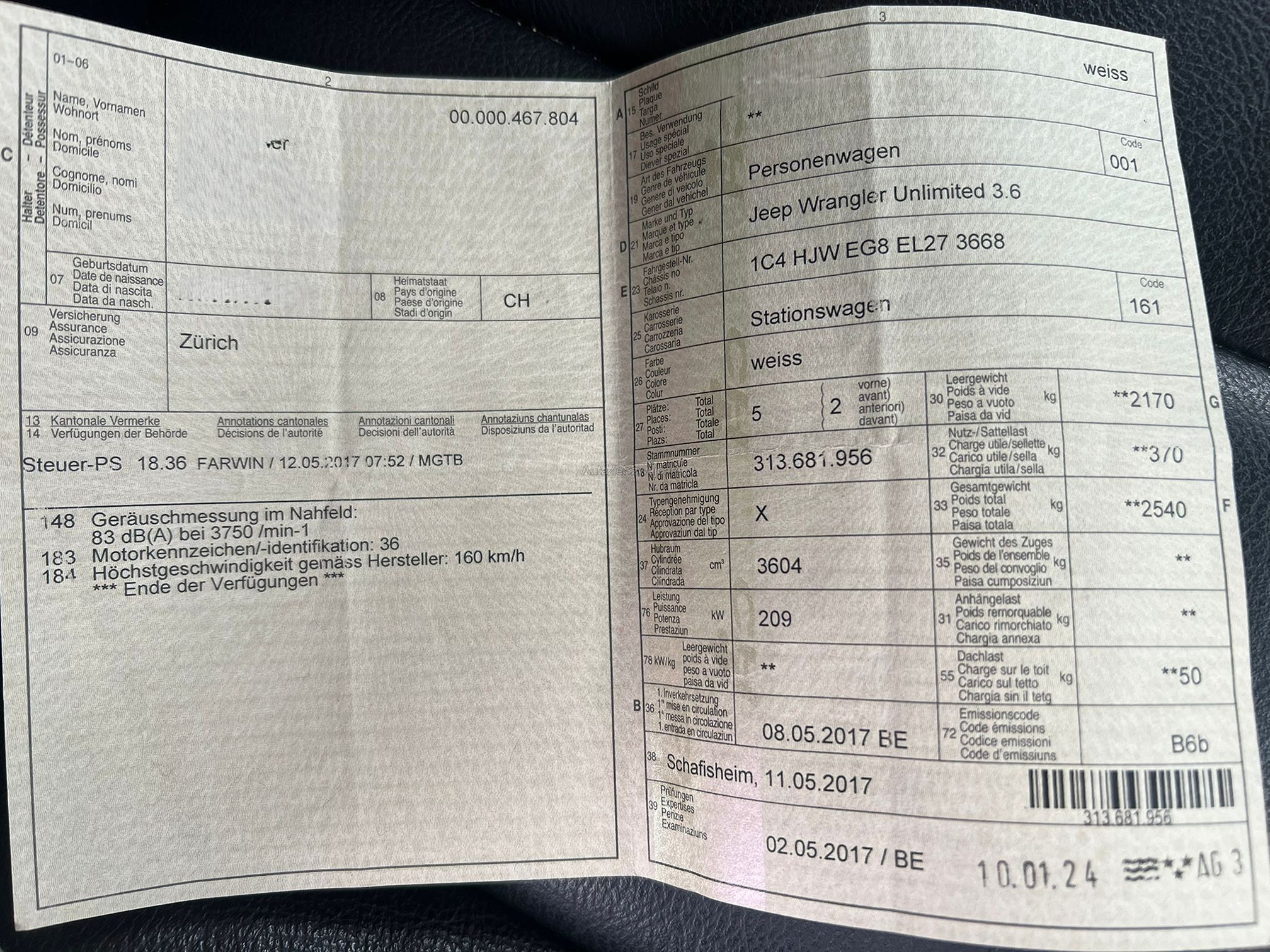 | Kommentar | Hundefahrzeug. Es wurde kein Eintauschtest durchgeführt. Wie es bei solchen Fahrzeugen gelegentlich vorkommen kann, ist das Fahrzeug auf der Fahrerseite undicht, wodurch der Teppich feucht ist. Eine Abdichtung ist möglich; die Kosten dafür belaufen sich auf ca. CHF 1’500.–. Zudem muss die Lampenfassung vorne rechts ersetzt werden. Alters-, nutzungs- und laufzeitbedingte Mängel am Fahrzeug sind nicht ausgeschlossen und nicht verhandelbar. Für festgestellte und nicht festgestellte Mängel wird keine Haftung übernommen. Gilt nicht für Schäden welche nach dem Zuschlag entstehen. In diesem Fall wird der Käufer informiert. Eine Minderung des Kaufpreises oder eine Rückgabe (Wandelung) ist ausgeschlossen. Das Fahrzeug muss spätestens 5 Tage nach dem Kauf abgeholt werden (gemäss angegebenem Verfügbarkeitsdatum), ansonsten wird eine Standgebühr pro Tag verrechnet. |