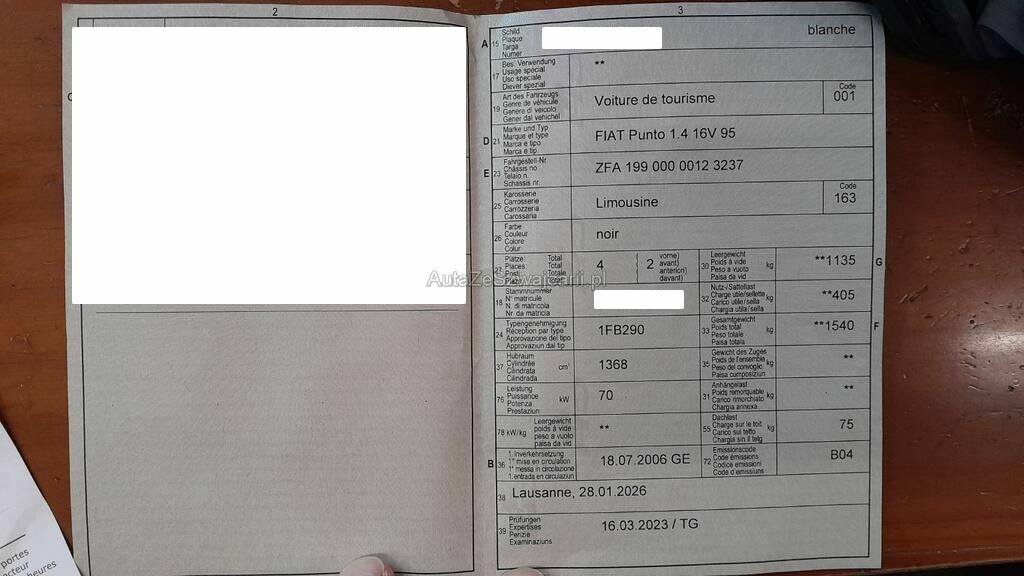 | Typ | Punto 1.4 16V 95 |