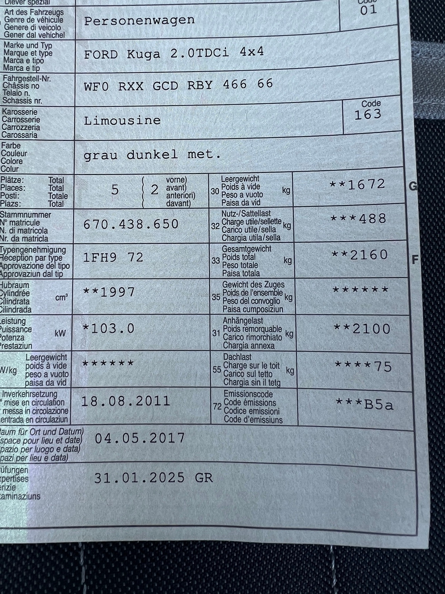 | VIN | WF0XXX |
