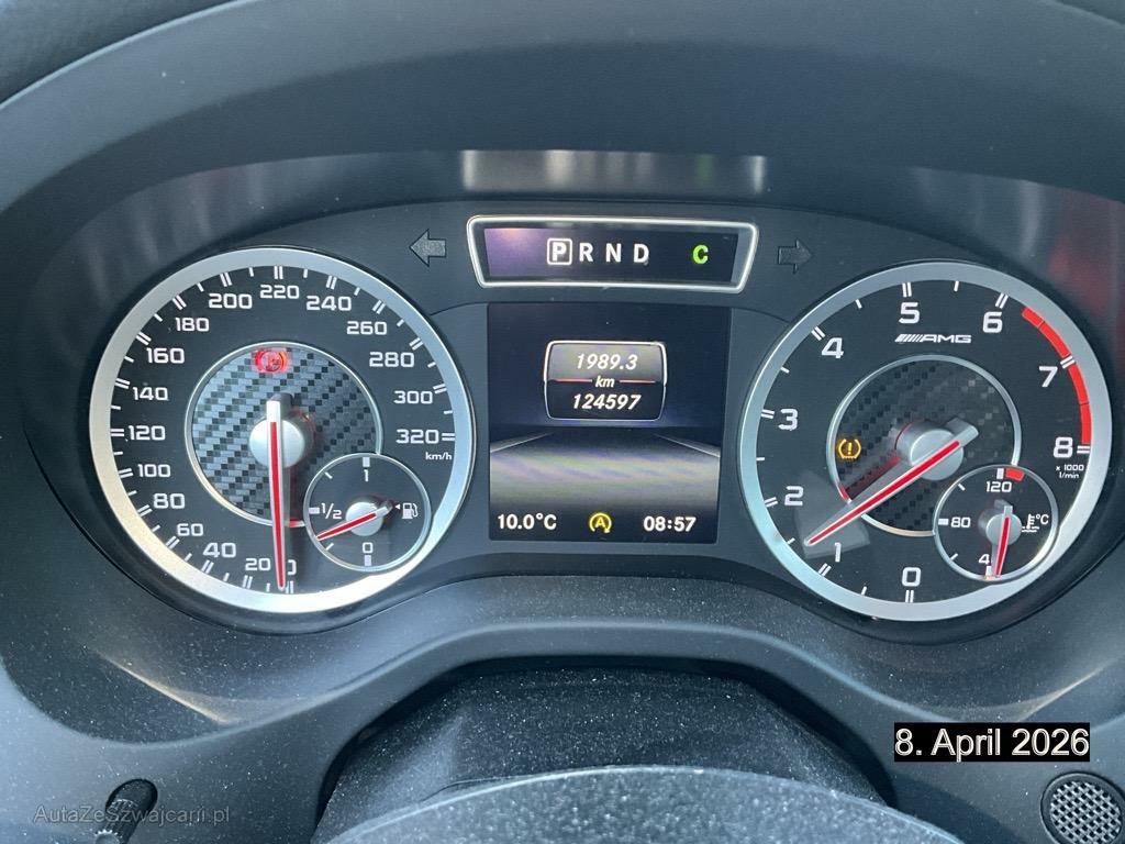 | Serienausstattung | Dekor: Dachhimmel schwarz, Armauflage vorne, verschiebbar, Airbag: Window-Kopfairbags, Zentralverriegelung mit Fernbedienung und automatischer Türverriegelung, Fahrwerk:AMG Sportfahrwerk, Antriebsschlupfregelung (ASR), Klimaanlage manuell, mit Pollenfilter, Paket: AMG Styling-Paket, AMG Leichtmetallräder 5-Doppelspeichen- Design 18J, Bremsscheiben vorne gelocht, Höhenverstellbare Gurten vorne, Türgriffe aussen in Wagenfarbe, Wartungsintervall-Anzeige, Crash-Sensor, Bremsassistent (BAS), Controller auf Mittelkonsole, Make up-Spiegel links, Lenkrad:Multifunktions-Sportlenkrad in Leder,unten abgeflacht, Lenkrad längs- und höhenverstellbar, Scheibenwischer vorne mit Intervall, Licht: Nebelschlussleuchte, Steckdose 12-Volt- vorne, USB-Anschluss, Sitze:Gurtstraffer vorne, Allradantrieb permanent, Drittes Bremslicht LED, Fahrwerk:AMG Sport-Parameterlenkung, Licht:Adaptives Bremslicht, Antiblockiersystem (ABS), Heckscheibenheizung, Audio 20 Radio CD/MP3 mit Farbdisplay, Bluetooth-Schnittstelle mit Freisprech- funktion, Aux-in-Anschluss und Telefon- tastatur, Airbag: Seitenairbag für Fahrer und Beifahrer, Dekor: Zierelemente Carbonoptik, Assist:Reifendruck-Kontrollanzeige, Reiserechner, Licht: LED Blinker im Aussenspiegel, Fahrersitz höhenverstellbar, Nichtraucherausführung, Sitze:Sitzkomfort-Paket, AMG Kühlergrill, Interieur mit roten Kontrastziernähten, Crashaktive Notbeleuchtung, Beleuchtetes Handschuhfach, Katalysator geregelt, Dekor: Bordkantenzierstab in Chrom, Assist:ADAPTIVE BRAKE mit HOLD-Funktion und Berganfahrhilfe, Bi-Xenon-Scheinwerfer inkl. Reinigungsanlage, AMG Sport-Abgasanlage mit zwei verchromten Endrohrblenden, Assist: ATTENTION ASSIST (Aufmerksamkeitsassistent), Fahrwerk:AMG Hochleistungs-Bremsanlage, Sportpedalanlage, Elektrische Fensterheber vorne + hinten, Airbag: Knie-Airbag für Fahrer, Polster:Polsterung Ledernachbildung ARTICO / Microfaser DINAMICA, Aussentemperaturanzeige, Bremsbelagverschleiss, Kontrollanzeige für Lampenausfall, Assist: Tempomat mit variabler Geschwindigkeitsbegrenzung SPEEDTRONIC, Heckscheibenwischer, Ablagen in den Türen, 12-Volt-Steckdose hinten, Multifunktionsanzeige, Aussenspiegel in Wagenfarbe, Assist:COLLISION PREVENTION ASSIST (Kollisionswarnung), Frontscheibe Verbundglas, Make up-Spiegel rechts, Tagfahrlicht, Airbag: Airbag Fahrer und Beifahrer, Elektronisches Stabilitäts-Programm (ESP), Geräusch- und Wärmeschutzverglasung, Stossstangen in Wagenfarbe, Licht: Fahrlichtassistent (automatisches Fahrlicht), Gurtkontrolle, 7-Stufen-Automat AMG SPEEDSHIFT DCT, AMG DRIVE UNIT, Lackierung: Uni-Lackierung, Wegfahrsperre elektronisch, Sitze: 3-Punkt-Sicherheitsgurte auf allen Plätzen, Kindersicherung an den hinteren Türen, AMG Veloursfussmatten, AMG Kombiinstrument, Sitze: Rücksitzlehne geteilt abklappbar, AMG Einstiegleisten, Reifenreparatur-Set (Tire Fit), Dekor:designo Sicherheitsgurte, farbig, Befestigungsösen im Laderaum, Dekor:Türmittelfelder in Mikrofaser DINAMICA |