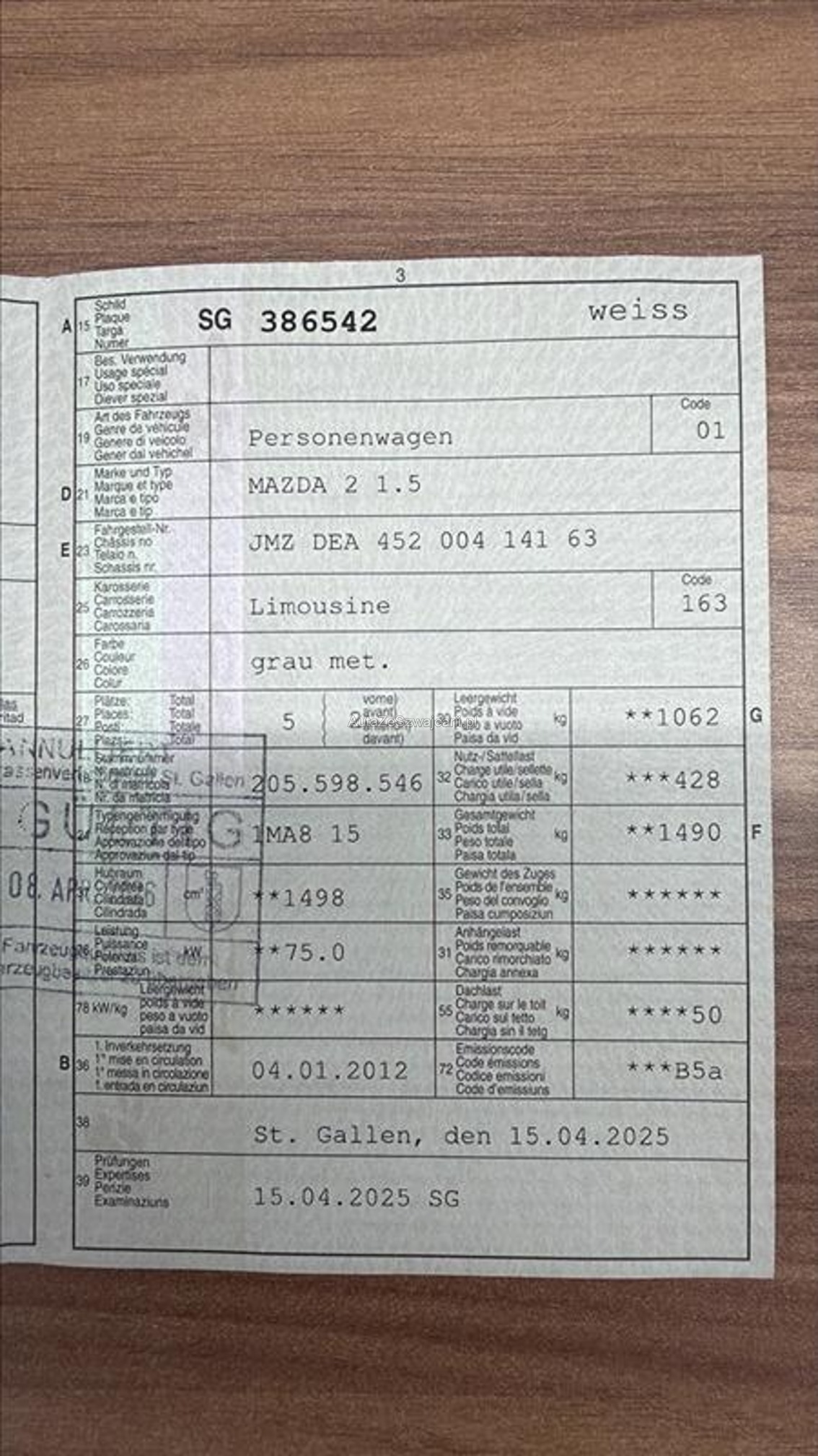 | Kommentar | Das Fahrzeug ist gepflegt. Aussen ein paar Kratzer und Dellen. Unfallfrei. Letzter Service 09.04.2025 @ 134'002km, Auto läuft einwandfrei ohne irgendwelche Geräusche, Kupplung tip top, |