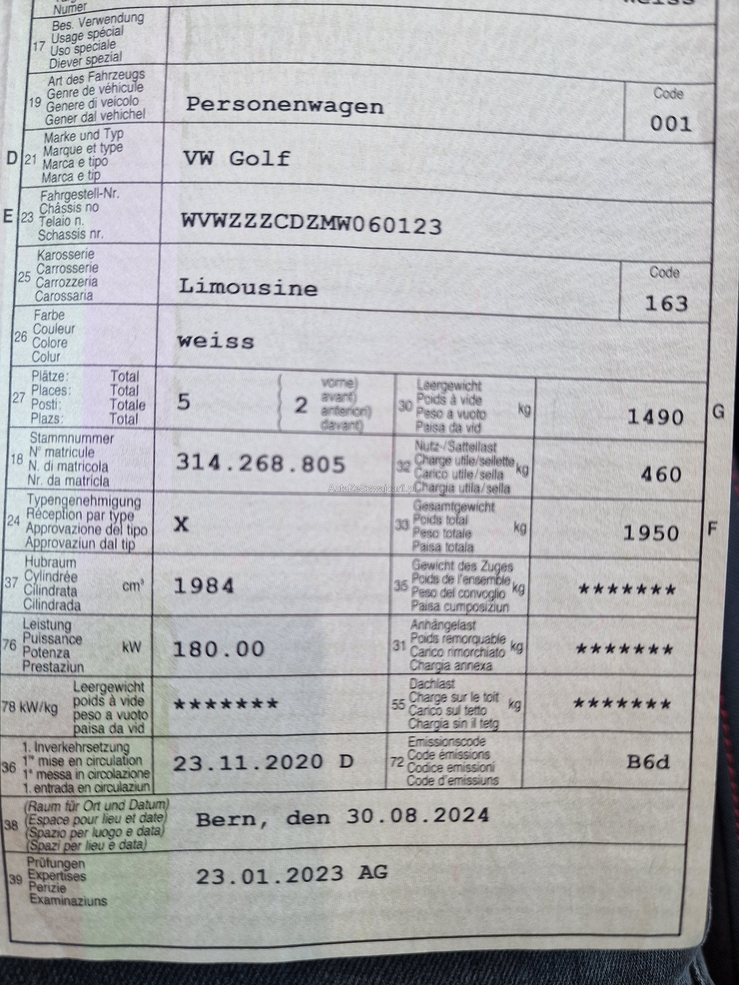| VIN | WVWXXX |