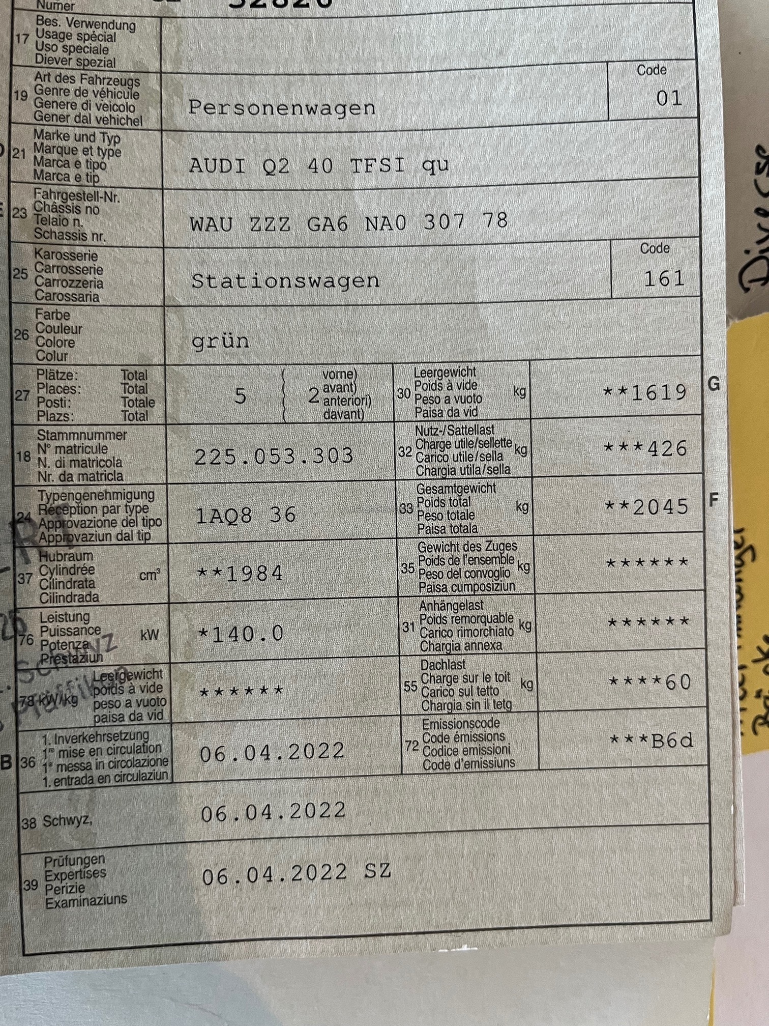 | Kommentar | CH-Fahrzeug in nahezu perfektem Zustand aus 1. Hand (Leasingrückläufer) Fahrzeug ist nahezu Voll ausgestattet, Neupreis CHF 67500.- Hat 3 Parkdellen & einen etwas grösseren Steinschlag in der Frontscheibe, jedoch ausserhalb des Sichtfeldes. Winterreifen ca. 3mm, Sommerreifen ca. 4-4.5mm Am Fahrzeug wurde kein Werkstatttest gemacht (Für sichtbare oder nicht sichtbare Mängel wird nicht gehaftet). Wir testen & kontrollieren nicht alle Funktionen des Fahrzeugs. Das Risiko liegt somit vollumfänglich beim Käufer. Ab Platz ohne Garantie, Wandelung und Minderung werden wegbedungen. Am Fahrzeug wurde kein Werkstatttest gemacht (Für sichtbare oder nicht sichtbare Mängel wird nicht gehaftet). Wir testen & kontrollieren nicht alle Funktionen des Fahrzeugs. Das Risiko liegt somit vollumfänglich beim Käufer. Ab Platz ohne Garantie, Wandelung und Minderung werden wegbedungen. |