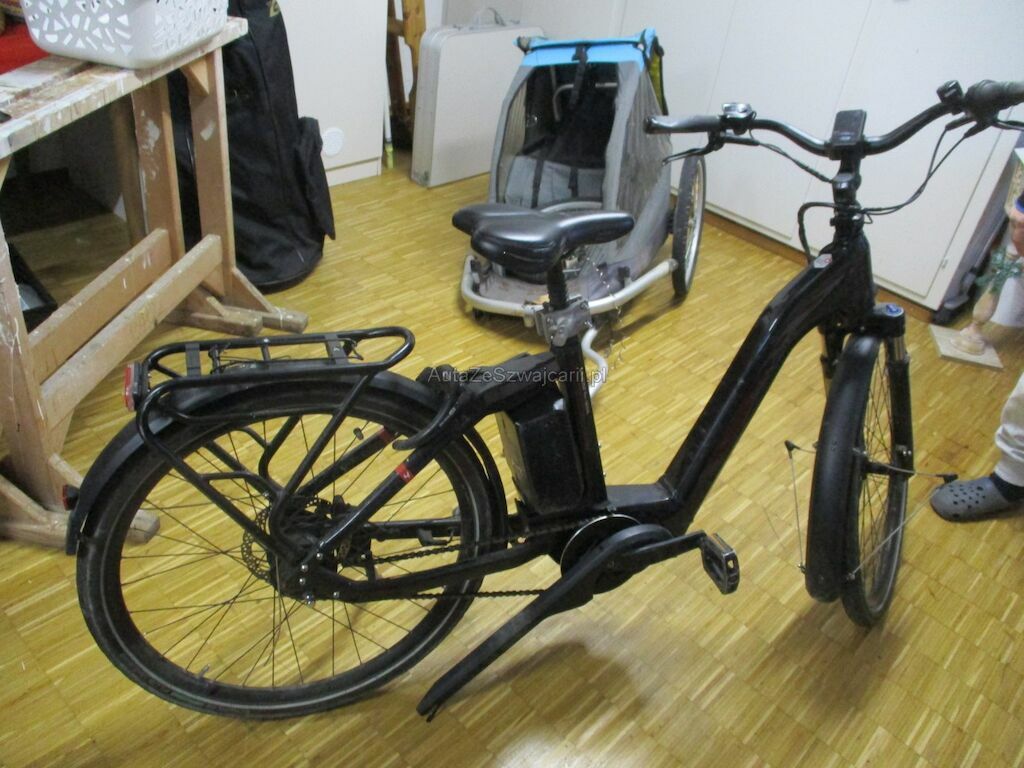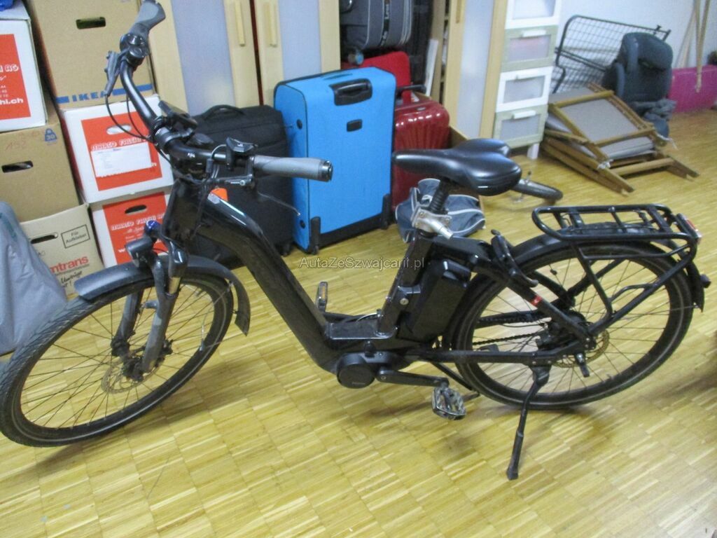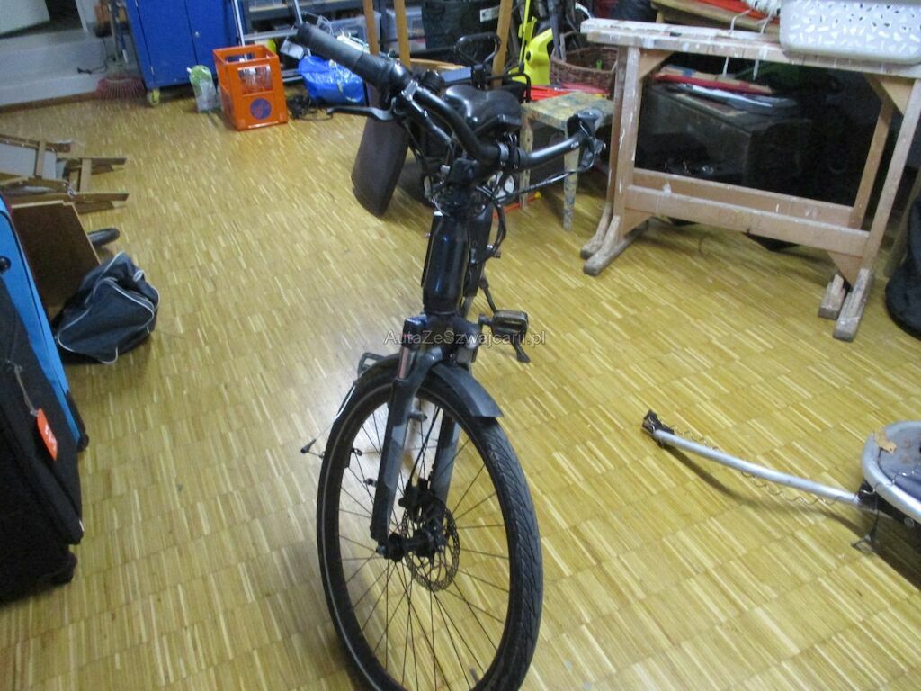 Das Velo kam auf die rechte Seite zu liegen. Dabei wurde der Akku beschädigt. Desweiteren sind die Pedale, die Griffe, Bremshebel und die Schutzbleche beschädigt. Der Gepäckträger und das Hinterrad muessen erneuert werden.