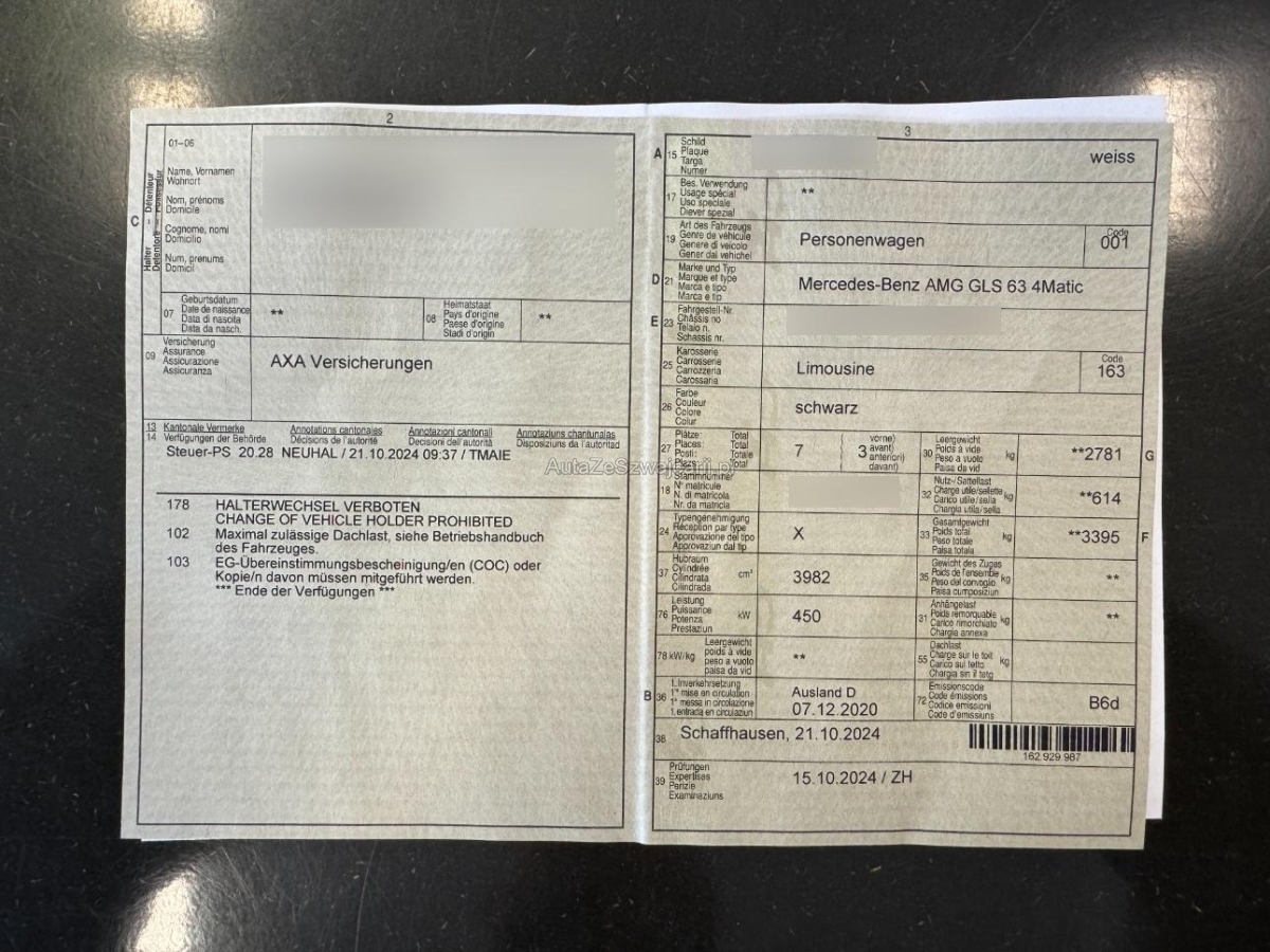 | Fahrzeugausweis | Vorhanden |