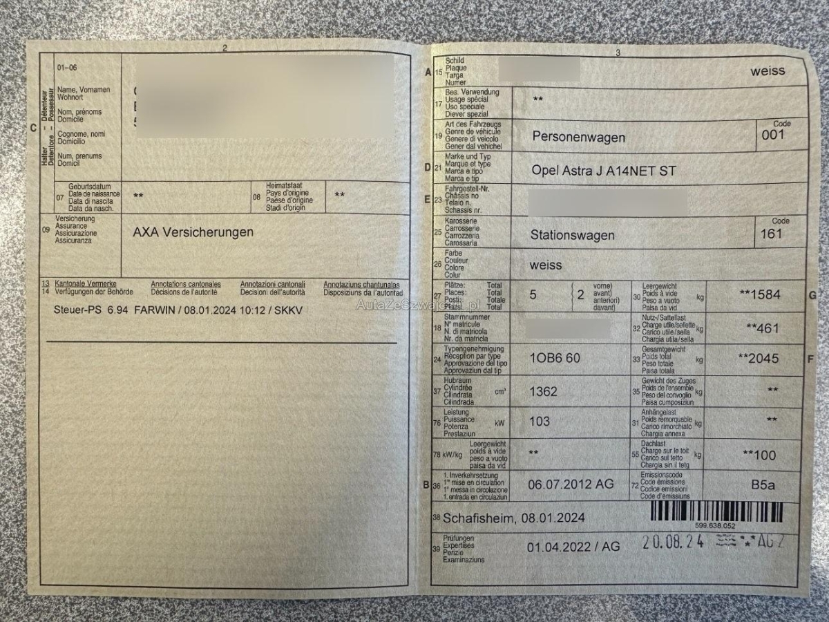 | Fahrzeugausweis | Vorhanden |