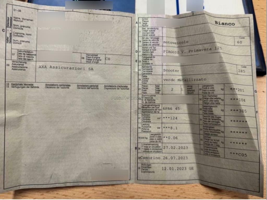 | Fahrzeugausweis | Vorhanden |