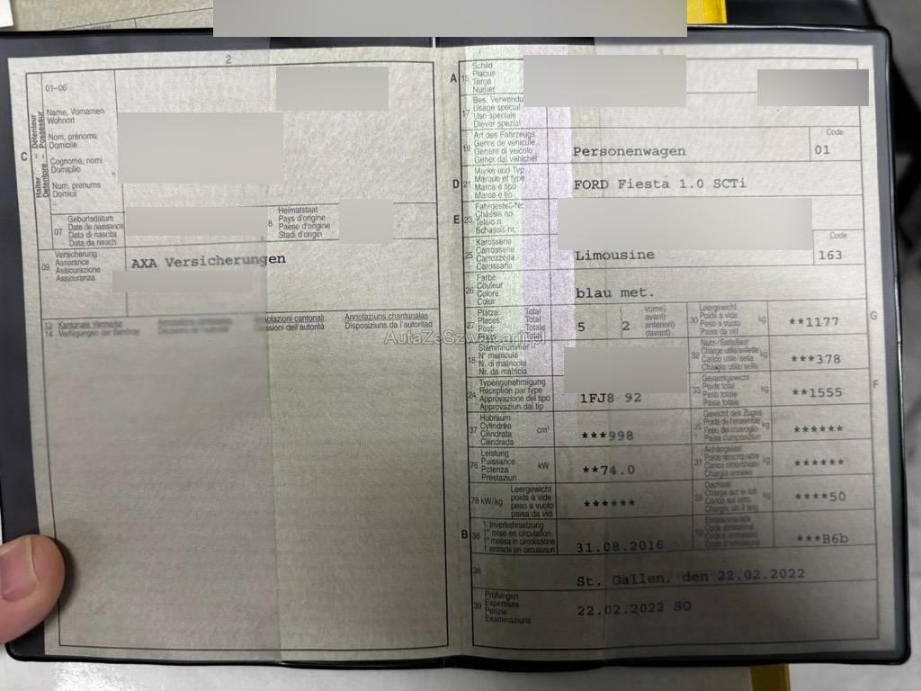 | Fahrzeugausweis | Vorhanden |