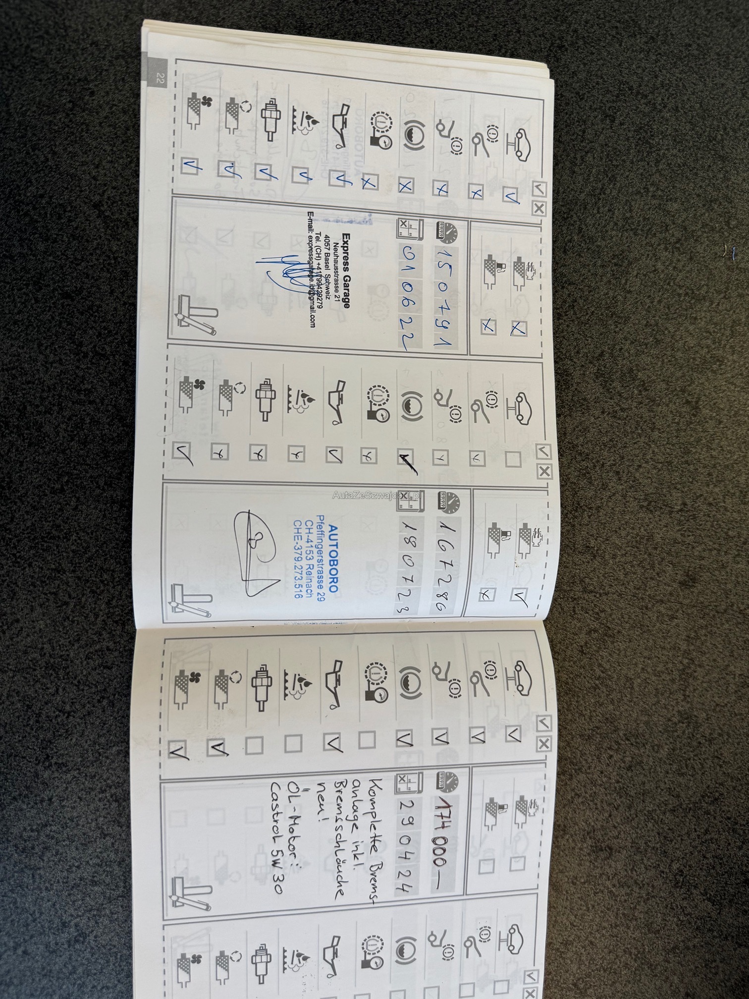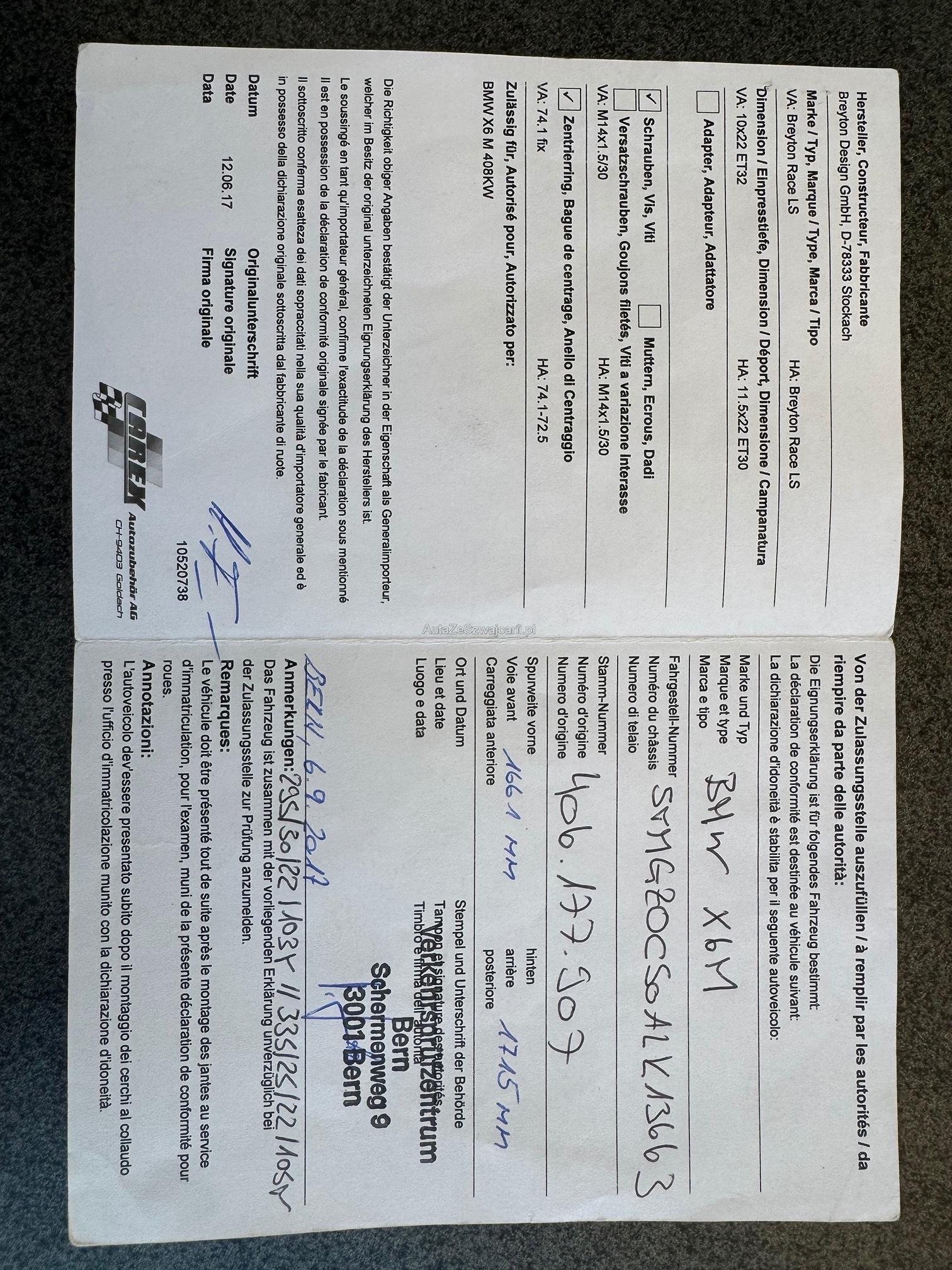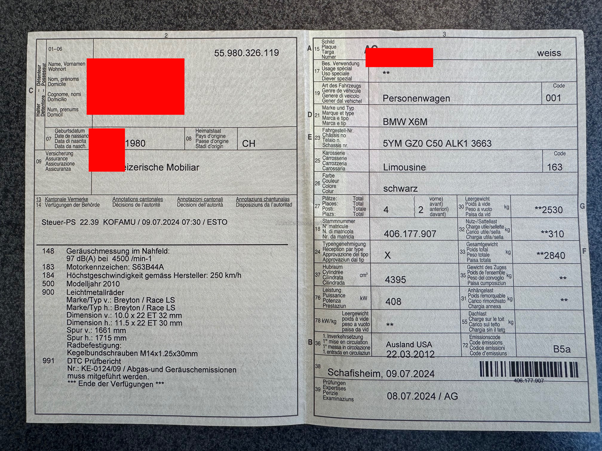 | Kommentar | Innen & Aussen gepflegt Felgen eingetragen - siehe DTC/Ausweis Bremse vorne+Hinten komplett neu vor 15‘000km Sommerreifen vor 2 Jahre ers./15000km Service fällig Mögliche Eintauschfahrzeug Das Auto wurde nicht bei unsere Werkstatt getestet oder geprüft. Ab Platz. |