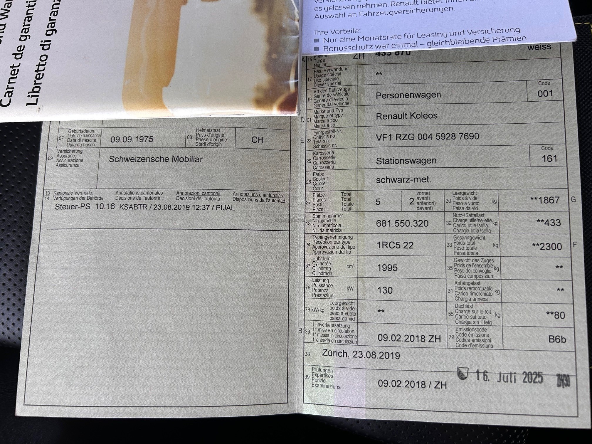 | Kommentar | Gepflegter Koleos 4x4 Automat in der Initiale Version. Der Wagen war lückenlos im Service und stammt aus 1. Hand. kleinere Karosserieschäden. Neue Sommerpneus auf Alufelgen / Winterräder Alu mit 4.5mm Restprofil. Das Fahrzeug fährt sich einwandfrei und alles funktioniert. Der Wagen wurde nicht abschliessend getestet und wird ab Platz ohne Nachwährschaft verkauft. |