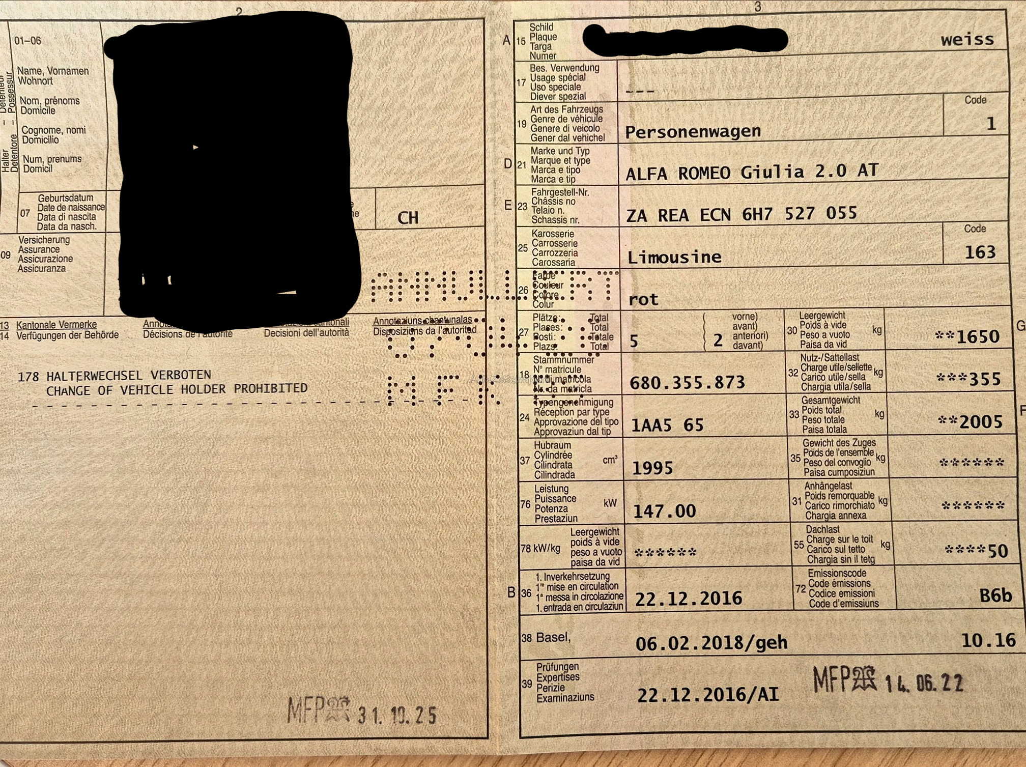 | Letzte Inspektion | 2025-10-01 |