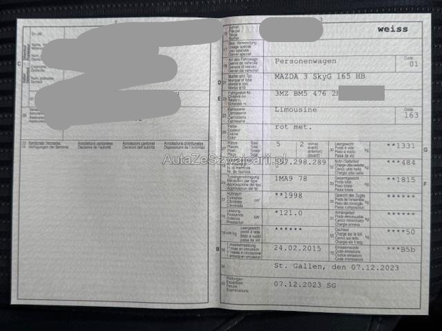 | Condition_and_Equipment | Zustand Fahrzeug ist fahrbar. Bereifung Fahrzeug wird mit Winterräder abgegeben. Sonstiges Fahrzeugdokumente vorhanden. Schlüssel Beide Schlüssel vorhanden. --- Rechts Schweller rechts ist eingedrückt. Tür hinten rechts ist eingedrückt. Sonstige Schäden Div.Carrosserie Teile sind leicht beschädigt. --- Serienaustattung Airbag Fahrer und Beifahrerseite Elektrische Fensterheber vorne + hinten Nebelscheinwerfer Innenspiegel automatisch abblendbar Multifunktionslenkrad Lederlenkrad mit Lederschaltknauf Leichtmetallfelgen 18" Aussenspiegel elektrisch verstellbar/ heizbar und anklappbar Bi-Xenon-Scheinwerfer Sound System Bose Dunkelgetönte Scheiben hinten Vorhangairbags vorne + hinten Zwei Zonen-Klimaautomatik Seitenairbags vorne Bluetooth Interface fürs Mobiltelefon Touchscreen-Farbbildschirm Heizbare Vordersitze Isofix-Kindersitzbefestigung hinten Rücksitzlehnen getrennt abklappbar 60:40 Geschwindigkeitsautomatik Head-Up Display Keyless Entry System Licht- und Regensensor Berganfahrhilfe Einparkhilfe hinten DSC Dynamische Stabilitäts- und Traktionskontrolle TCS Stop + Start System Einparkhilfe vorne LED Tagfahrlicht LED Rückleuchten Spurwechselassistent Keine Gewähr auf die Angaben der Serienausstattungen Radio/ CD mit AUX und USB City Notbremsfunktion Sonderausstattung Navigationssystem Garantieverlängerung 4. und 5. Jahr Pack Cruise Speziallackierung Ausstattung Metallic-Lackierung |