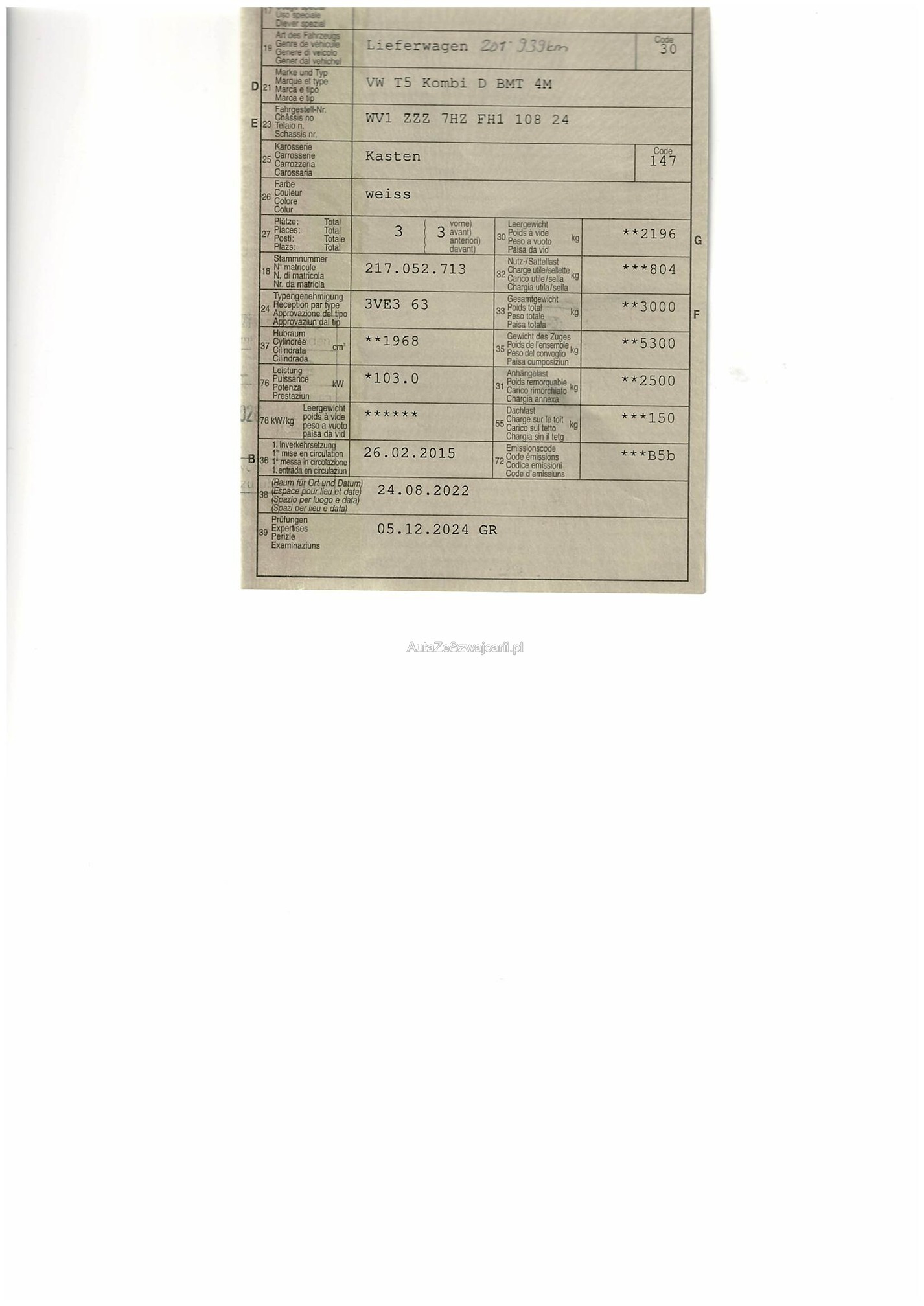 | VIN | WV1XXX |