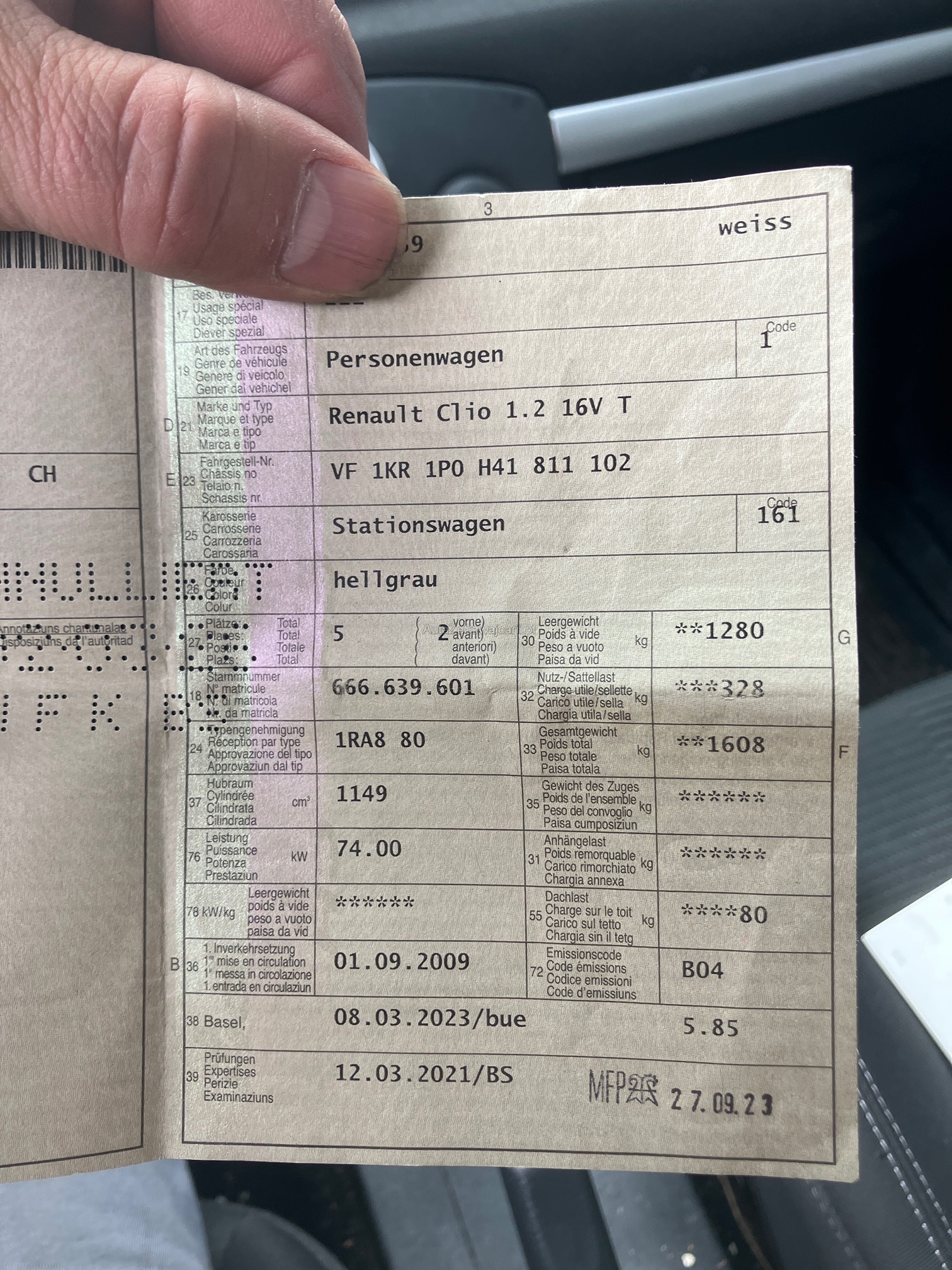 | Kommentar | Fahrzeug im Kundenauftrag ohne Werkstatttest. Barzahlung bei Übergabe. |