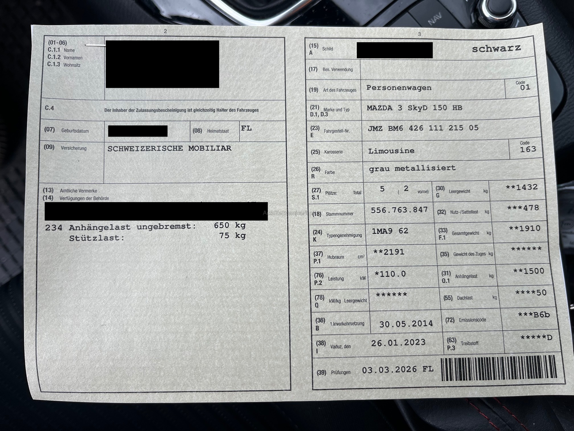 | Kommentar | Mögliches Eintauschfahrzeug, Zustand siehe Fotos, Fahrzeug hat hinten Rechts an der Türe und Seitenwand ein kleiner Schaden, Achtung Raucherfahrzeug, Displayfolie unten Links gerissen, Service und MFK wurden im März 2026 gemacht. Wir führen keine umfassenden Prüfungen oder Kontrollen sämtlicher Fahrzeugfunktionen durch. Offensichtliche Mängel werden, soweit erkennbar, benannt, jedoch unterziehen wir das Fahrzeug keinem detaillierten Werkstatttest. Daher übernehmen wir keine Haftung für sichtbare oder unsichtbare Mängel. Zur Vermeidung von Missverständnissen kann das Fahrzeug nach vorheriger Terminvereinbarung besichtigt, getestet und Probegefahren werden. Nachverhandlungen, jegliche Garantie, Wandelung und Minderung werden ausgeschlossen. |