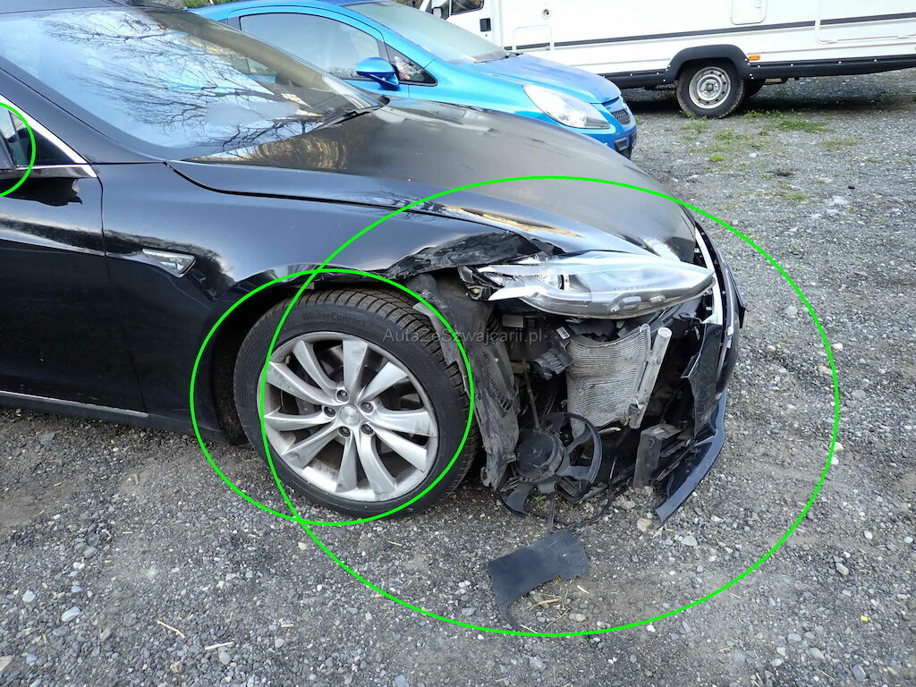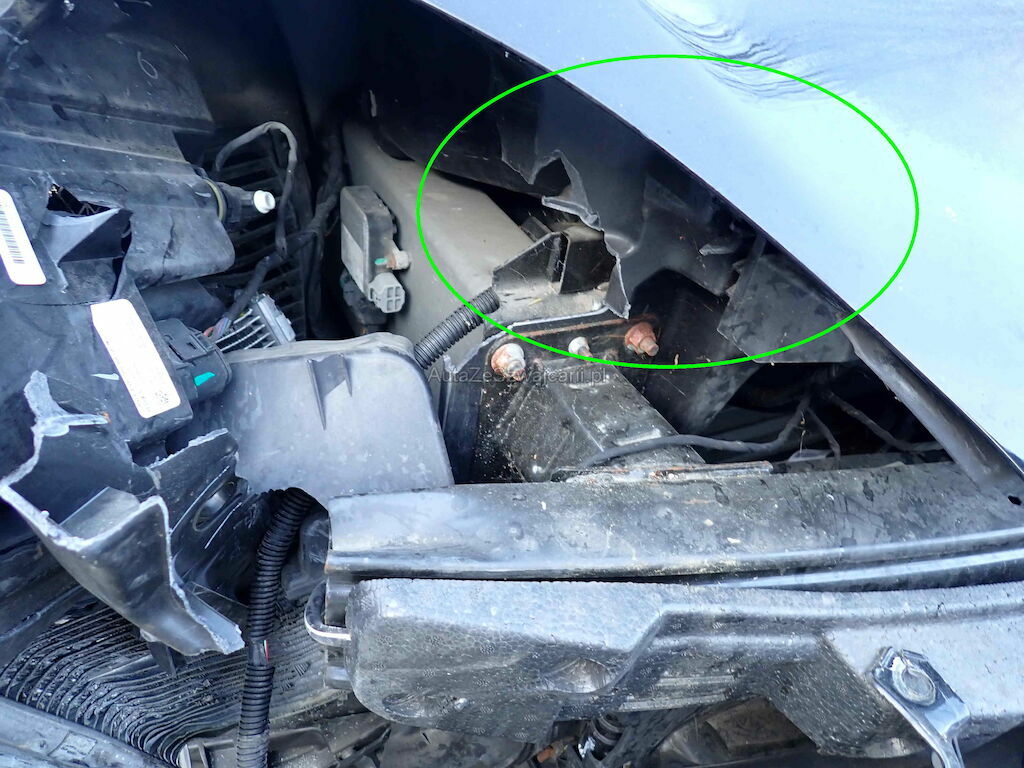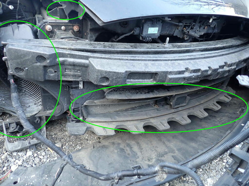 Parechoc av, ailes d-g capot, traverse avant, jante avd, rétroviseur d, radiateurs, phare, coffre av
