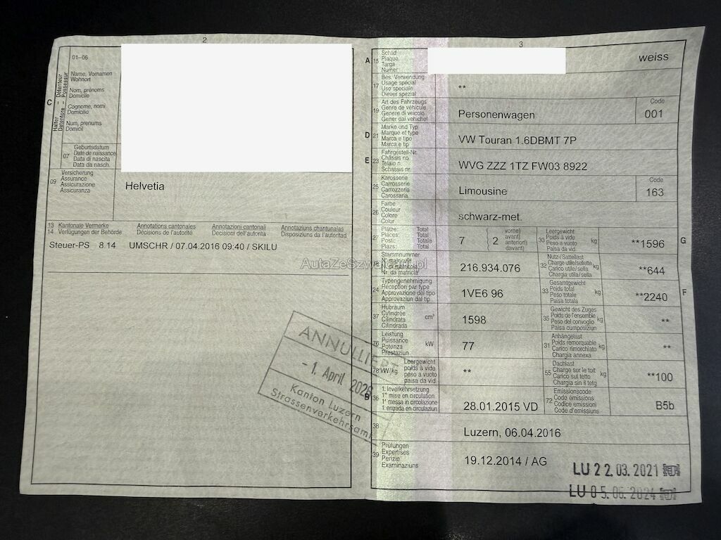 | Typ | Touran 1.6DBMT 7P |