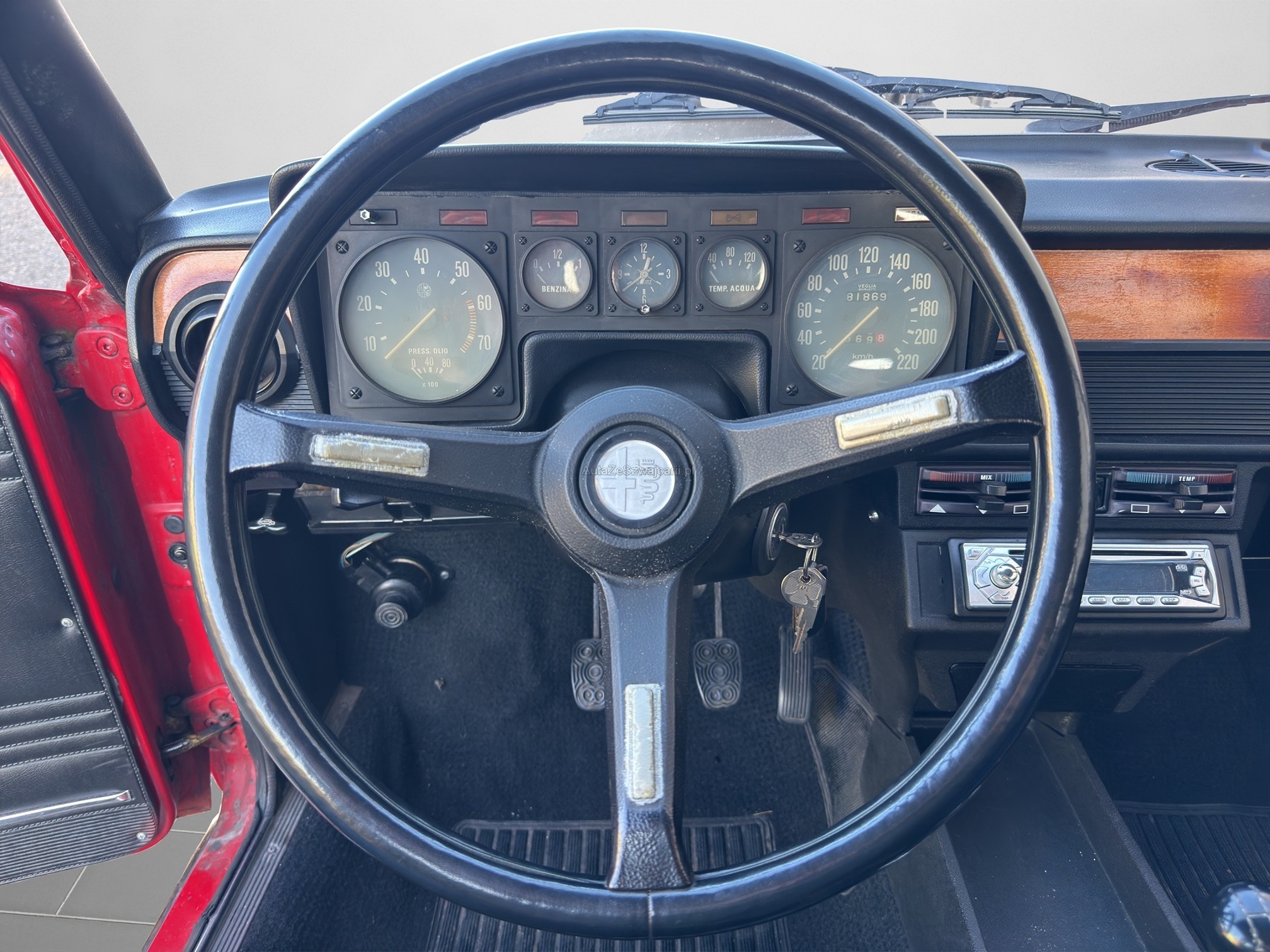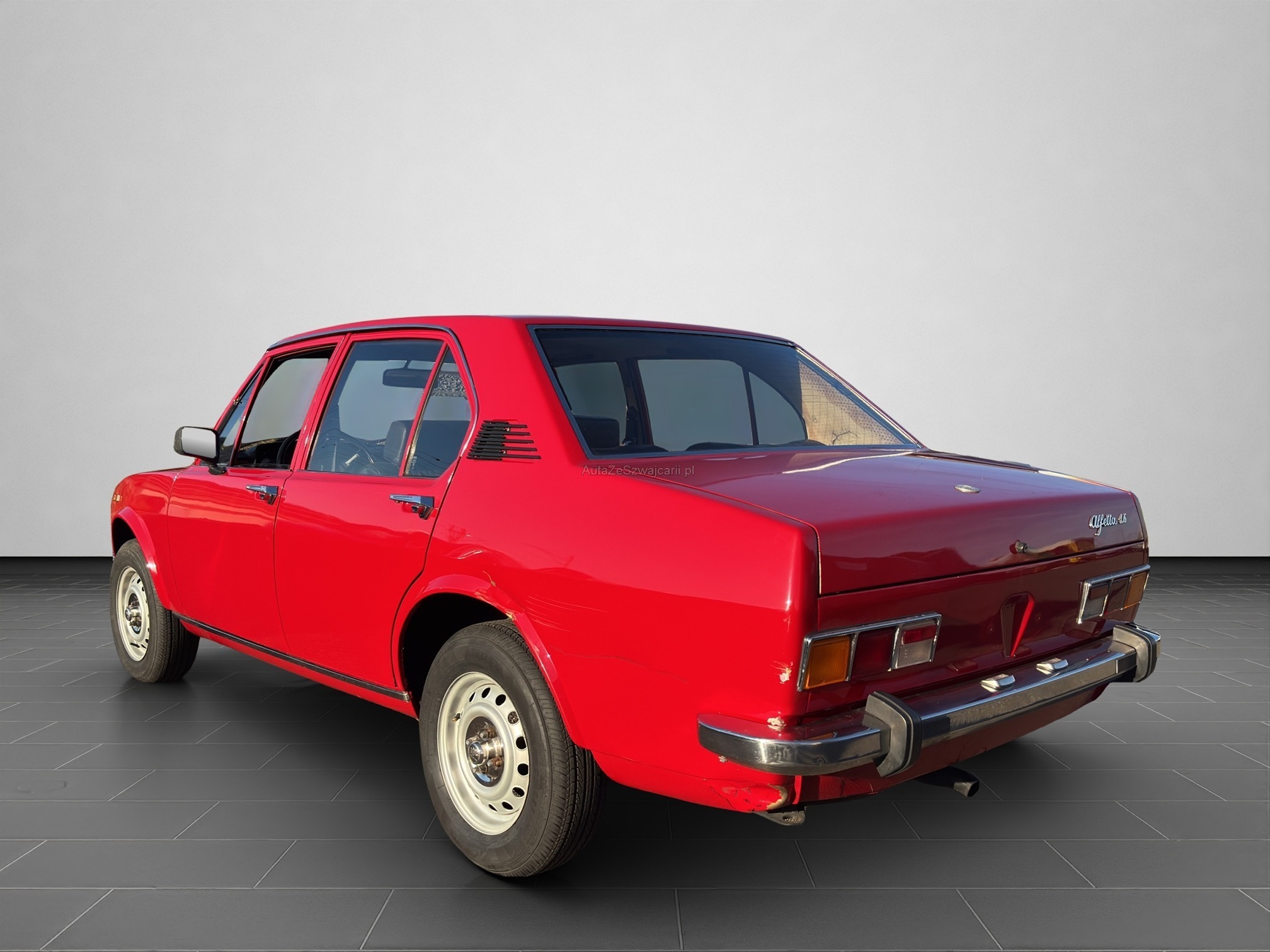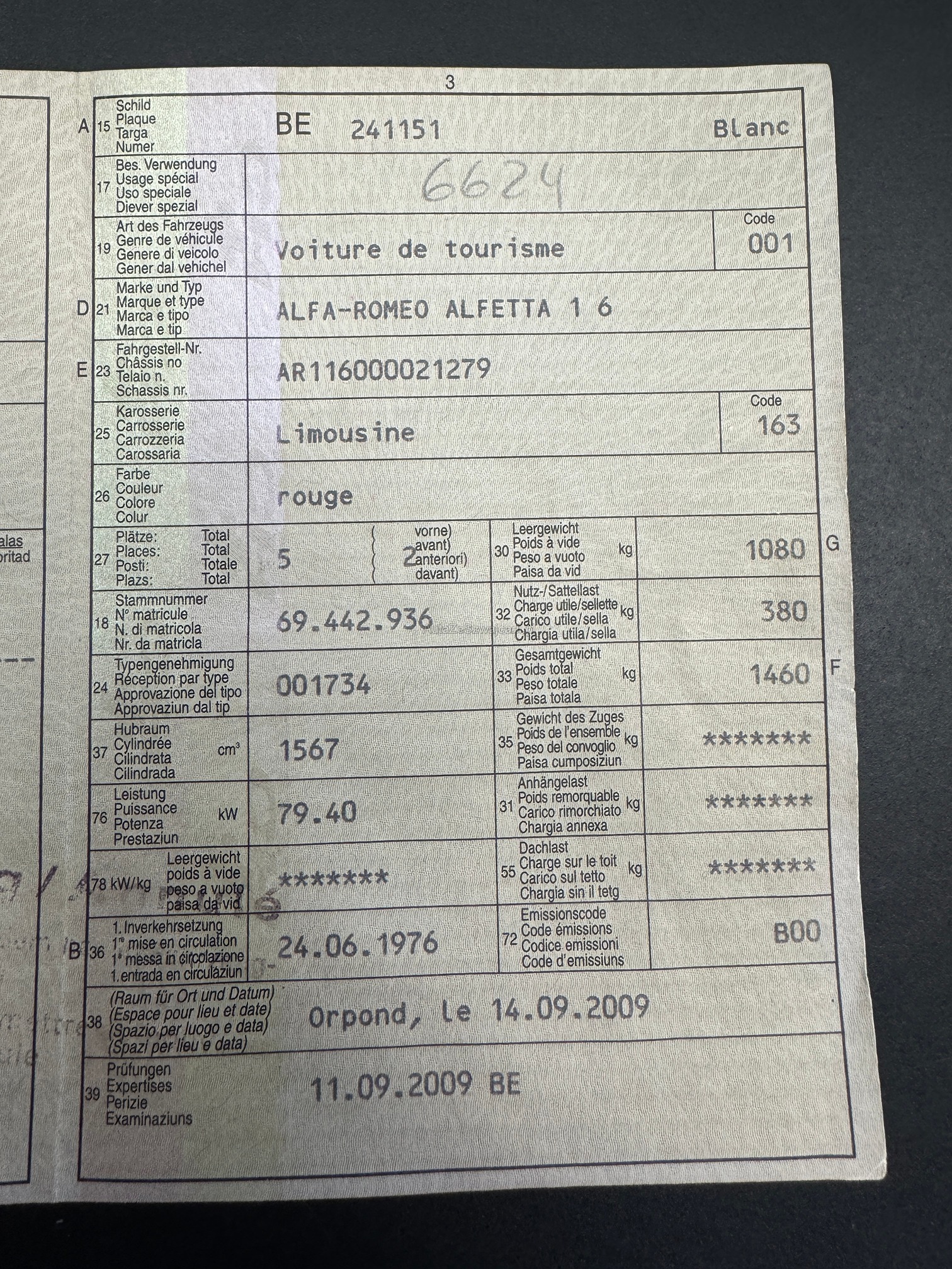 | Kommentar | Das Auto ist sehr lange gestanden und braucht einen grossen Service. Der Motor Läuft, die Vergaser sollten eingestellt werden. Der Alfa hat diverse Gebrauchspuren und Beulen. Er wurde stellenweise nachlackiert. Der Lack ist nicht wirklich schön und sollte stellenweise erneuert werden. Serviceheft fehlt, Ausweis vorhanden. Der Ausweis wurde im Dez. 2009 annuliert, seit dann steht das Fahrzeug. Km Stand gem. Tacho (nicht nachvollziehbar) |