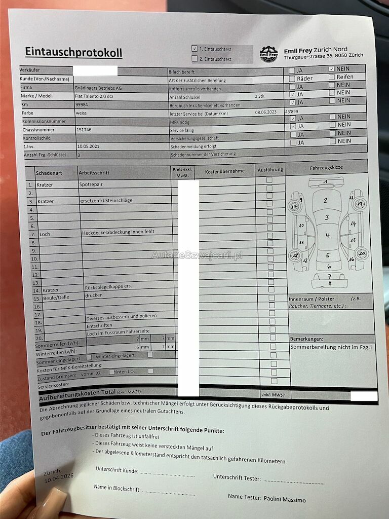 | Information | Keine technische Prüfung (Werkstatttest) vorgenommen Diverse Schäden an Karosserie/Lack. 8-fach bereift. Fahrzeug ab Platz, ohne Garantie und Aufbereitung. Keine Gewähr auf die Angaben der Sonder- und Serienausstattung / keine mechanische Prüfung. Fahrzeug wurde unzerlegt expertisiert / keine Haftung für allfällige, nach Demontage bekanntwerdenden Mängel. Fahrzeugbereifung und Ausstattung gemäss Fotos / Fahrzeugkauf auf eigenes Risiko ab Platz ohne Nachwährschaft. - Div. Kratzer und Dellen - Steinschlag auf der Frontscheibe - Heckdeckelabdeckung fehlt - Rückspiegelkappe ersetzen - Loch im Fussraum (Fahrerseite) - Probleme mit AdBlue |