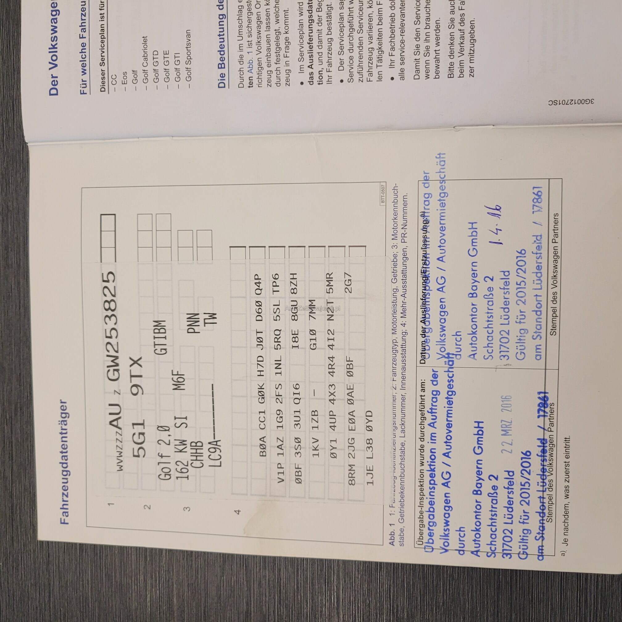 | VIN | WVWXXX |