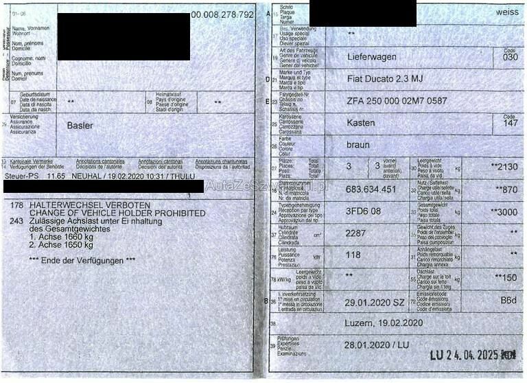 | Typ | Ducato 290 30 Kaw. 3450 H1 2.3 MJ |