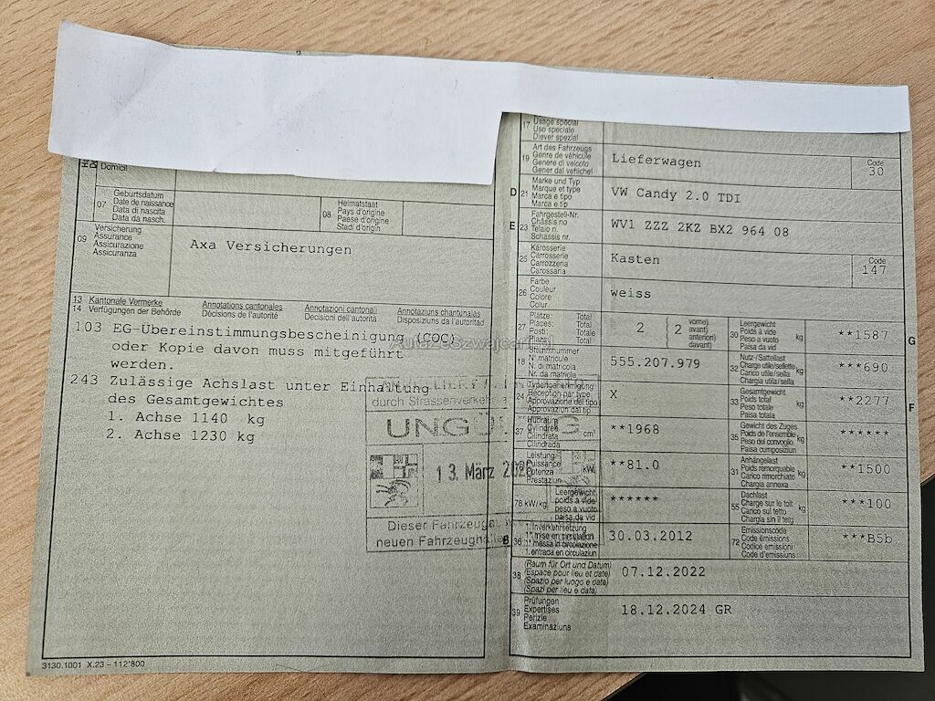 | Typenschein | X |