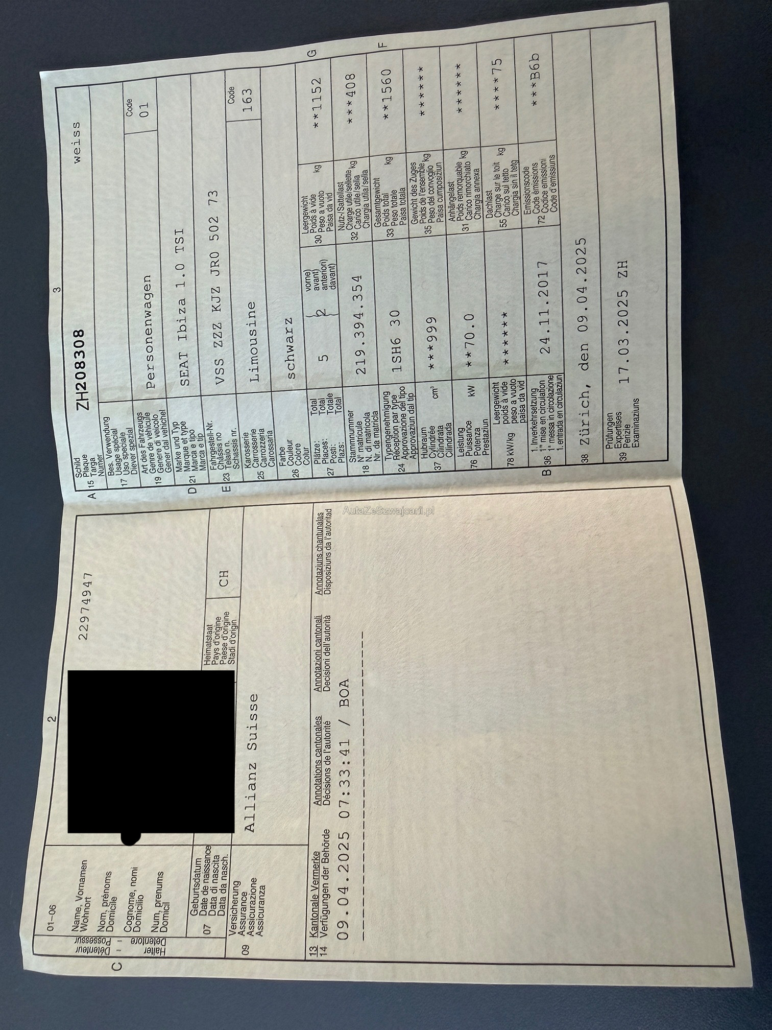 | Kommentar | Leichte Hagelschaden (Bilder vorhanden) |