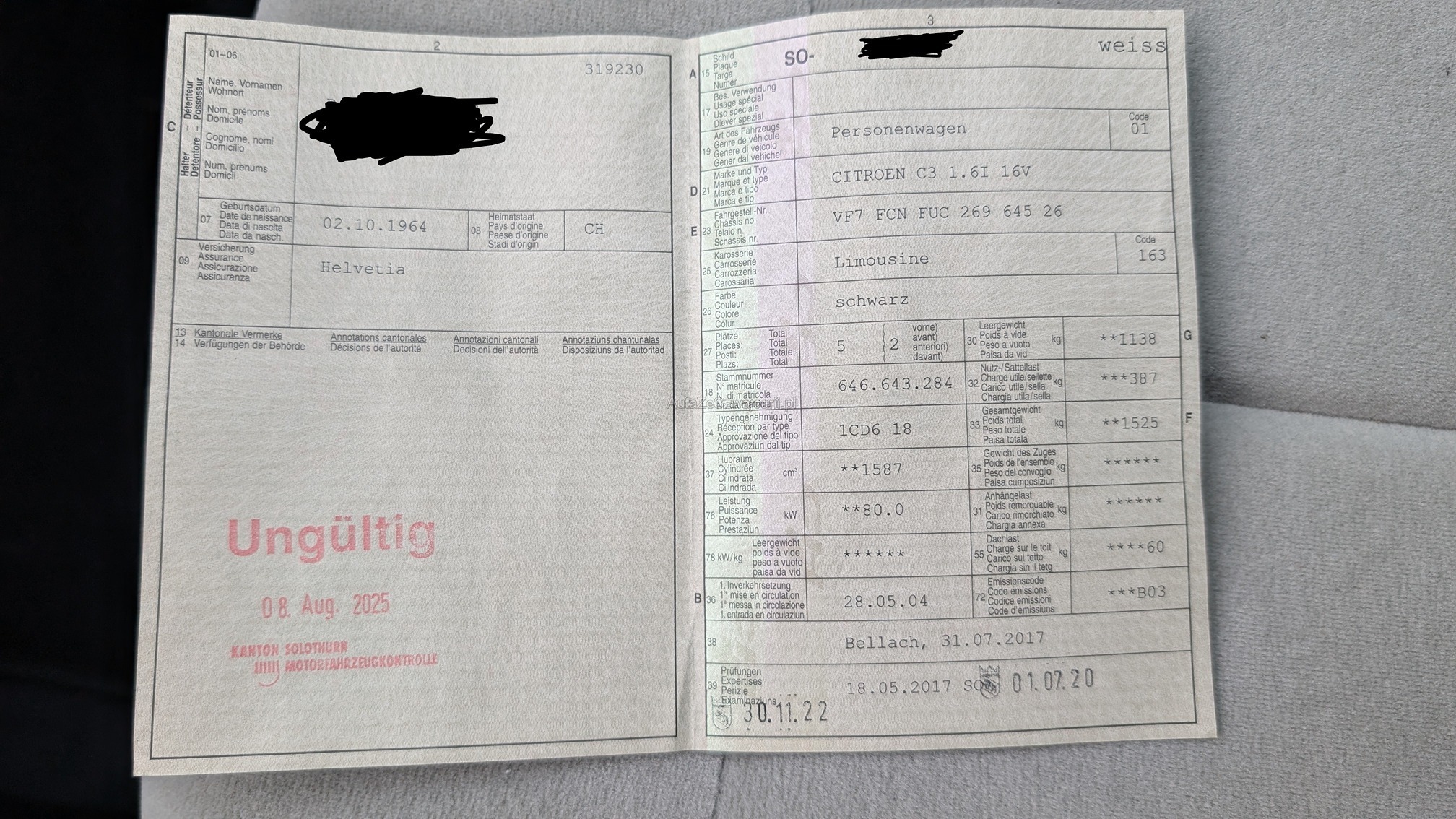 | Kommentar | Fahrzeug steht seit einiger Zeit. Starterbatterie defekt, Bremsen rostig, Auspuff defekt. Mängelliste nicht abschliessend. Dieses Fahrzeug wurden keiner Prüfung unterzogen. Fahrzeugkauf auf eigenes Risiko ab Platz ohne Nachwährschaft. Das Gewährleisten für Sachmängel wird weggegangen. Fahrzeugzustand und Ausstattung gemäss Bildern. Nachdem der Höchstbietende den Zuschlag erhalten hat, gibt es keine Nachverhandlung, auch wenn nicht deklarierte Mängel zum Vorschein kommen sollten. Nach Zuschlag MUSS der Wagen innert 7 Tagen abgeholt werden. |