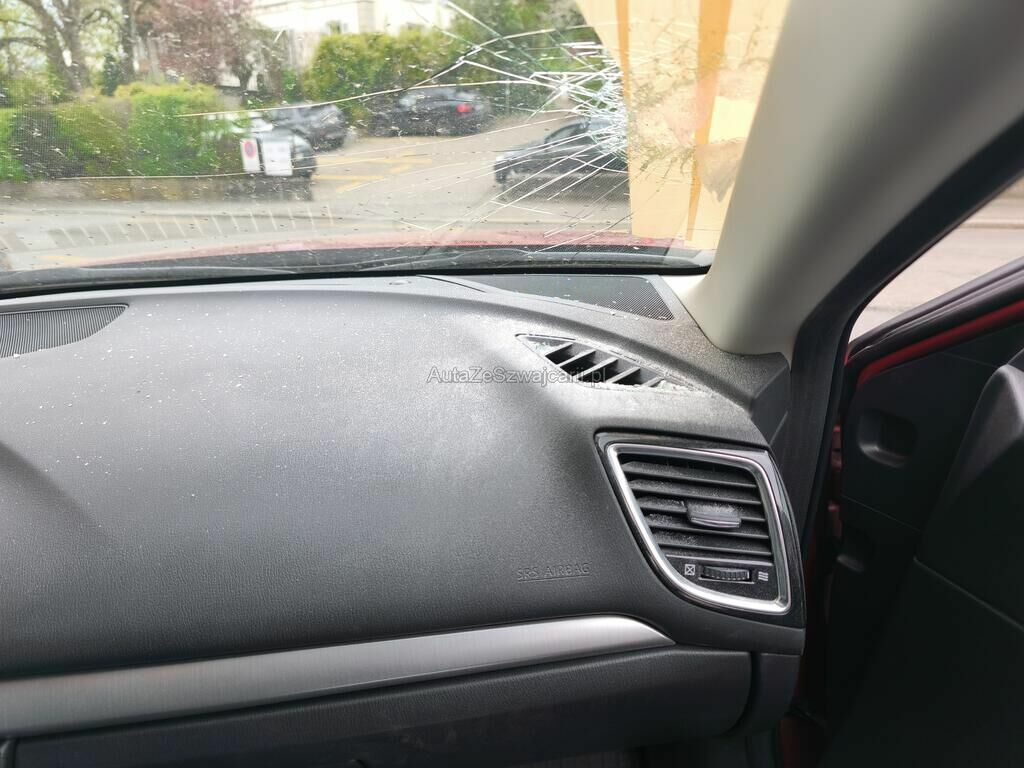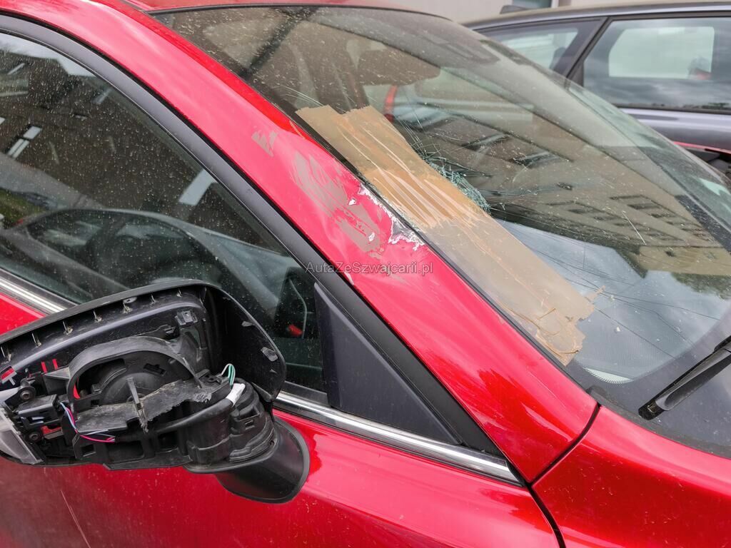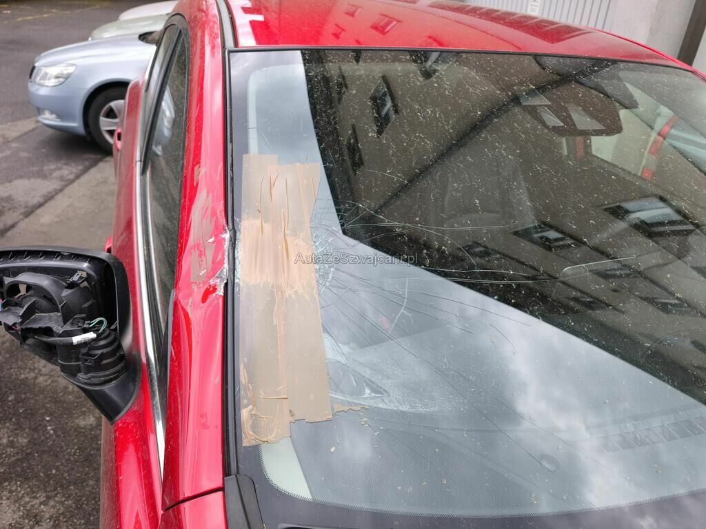 Beschädigt sind die Frontscheibe, die A-Säule, die Türe vorne rechts und der rechts Aussenspiegel.