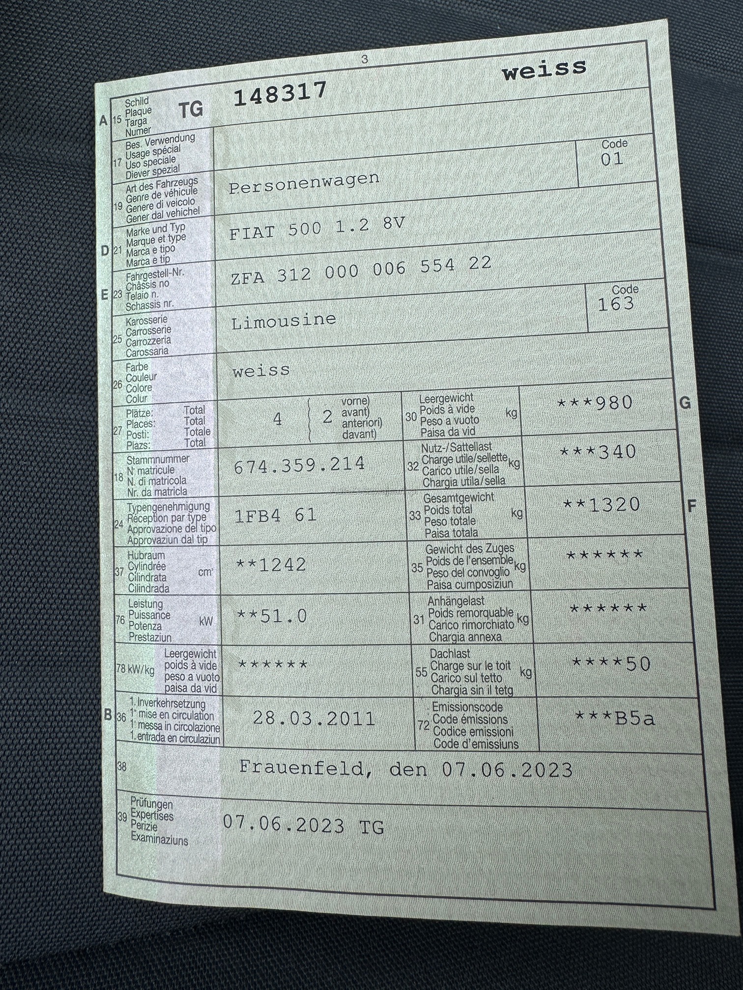 | Kommentar | Gepflegtes Eintauschfahrzeug 8-fach bereift. Es wurde keine technische Kontrolle durchgeführt. Das Fahrzeug fährt gut und schaltet sauber. Einige kleine Gebrauchsspuren innen und aussen. |