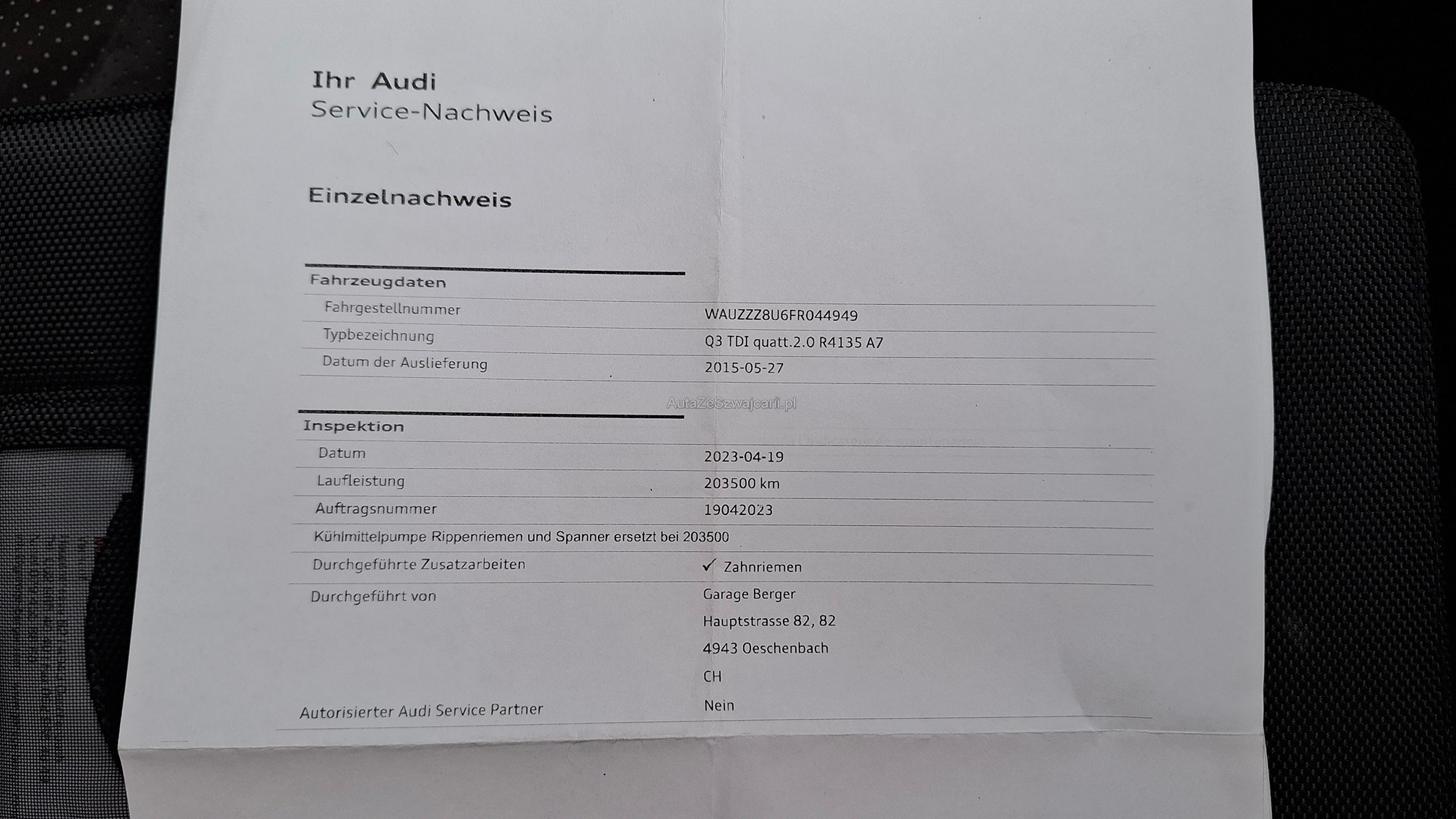 | Zahnriemen gewechselt | Yes |