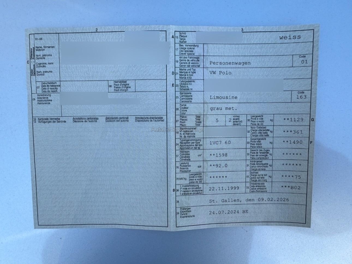 | Fahrzeugausweis | Vorhanden |
