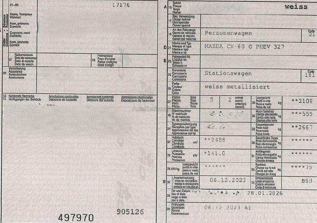MAZDA CX-60 - KH ab 03.2022 (LHD) / 04.2022 CX-60 2.5 PHEV Homura 2.5, 192 PS