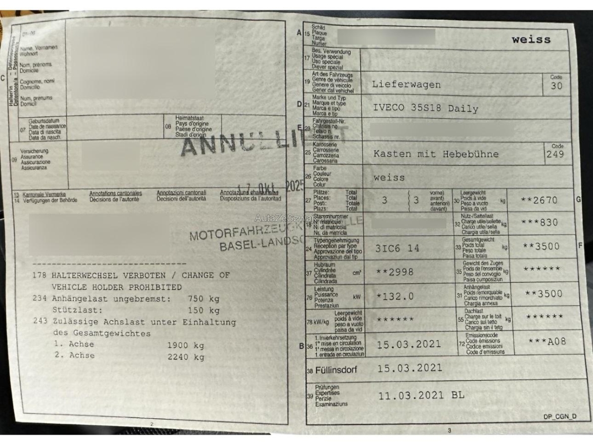 | Fahrzeugausweis | Vorhanden |