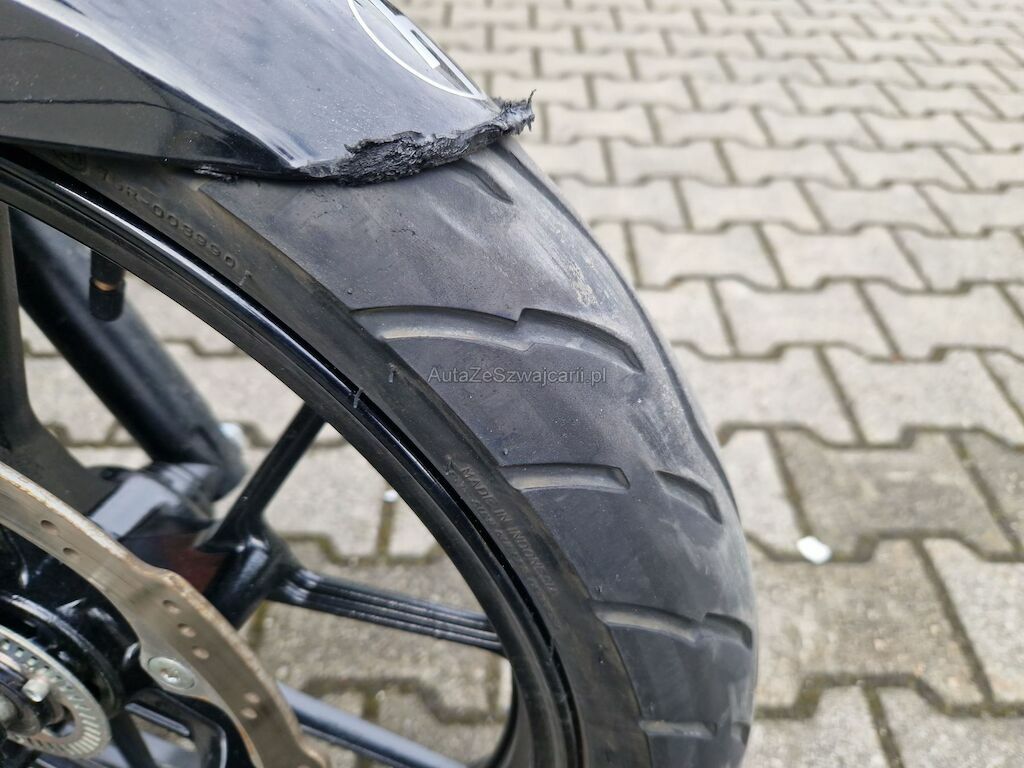 Beschädigung von Felge, Gabel, Frontmaske, Lenker, Seitenverkleidung, Fussraste, Bremspedal, Auspuffanlage, Heck sowie diversen Anbauteilen.