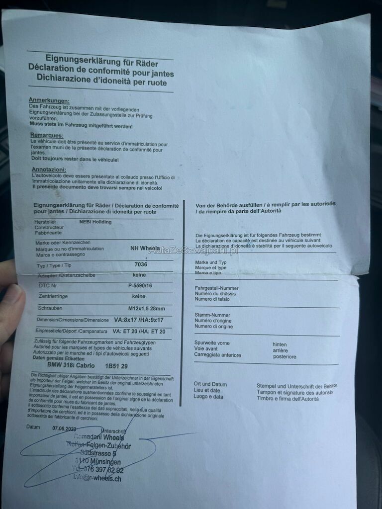 | Information | Keine technische Prüfung (Werkstatttest) vorgenommen Fahrzeug ab Platz, ohne Garantie und Aufbereitung. DPF/FAP Filter nicht kontrolliert Keine Gewähr auf die Angaben der Sonder- und Serienausstattung / keine mechanische Prüfung. Fahrzeug wurde unzerlegt expertisiert / keine Haftung für allfällige, nach Demontage bekanntwerdenden Mängel. Fahrzeugbereifung und Ausstattung gemäss Fotos / Fahrzeugkauf auf eigenes Risiko ab Platz ohne Nachwährschaft. - Dach geht nicht selbsständig auf und zu - Linke Seitenschweller leicht Lack ab - Hinterer Sitz aufgerissen - fahrersitz abgenutzt - Alpina Felgen 17zoll - Dach ist 100% dicht - 8 Winterreifen inklusiv dabei - !!Motorhaube wird frisch Lackiert!!! |