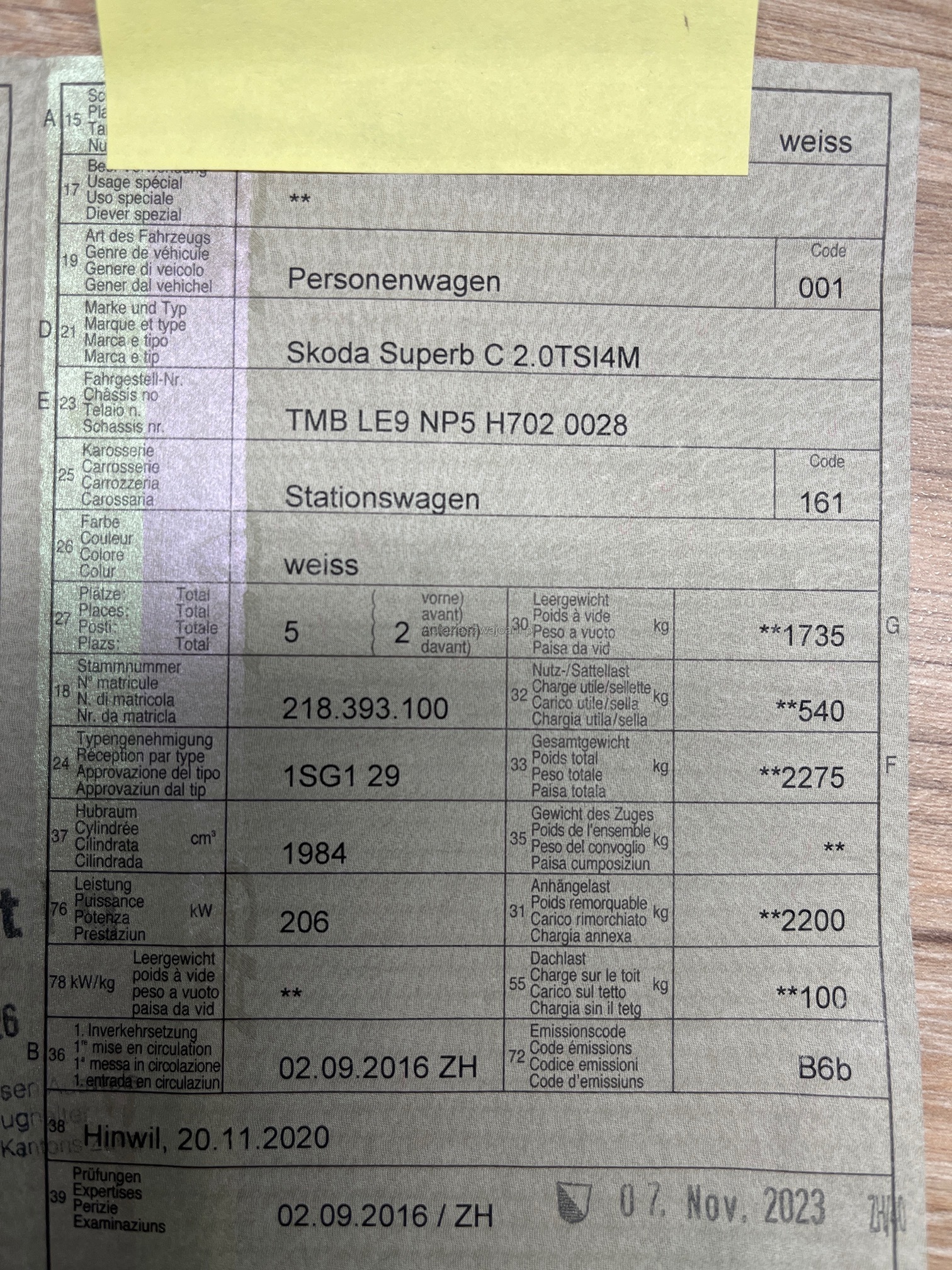| Letzte Inspektion | 2023-11-01 |