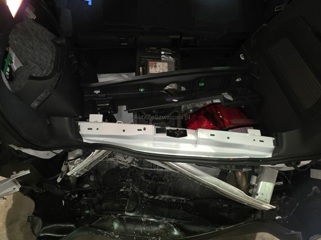Heckschaden: Stossstange, Träger, Heckblech, Reserveradmulde, Heckklappe, Seitenwände, Tür hinten links, Radhausverkleidungen, Kabelsatz und Parksensoren beschädigt. Weitere Beschädigungen am Unterboden möglich.