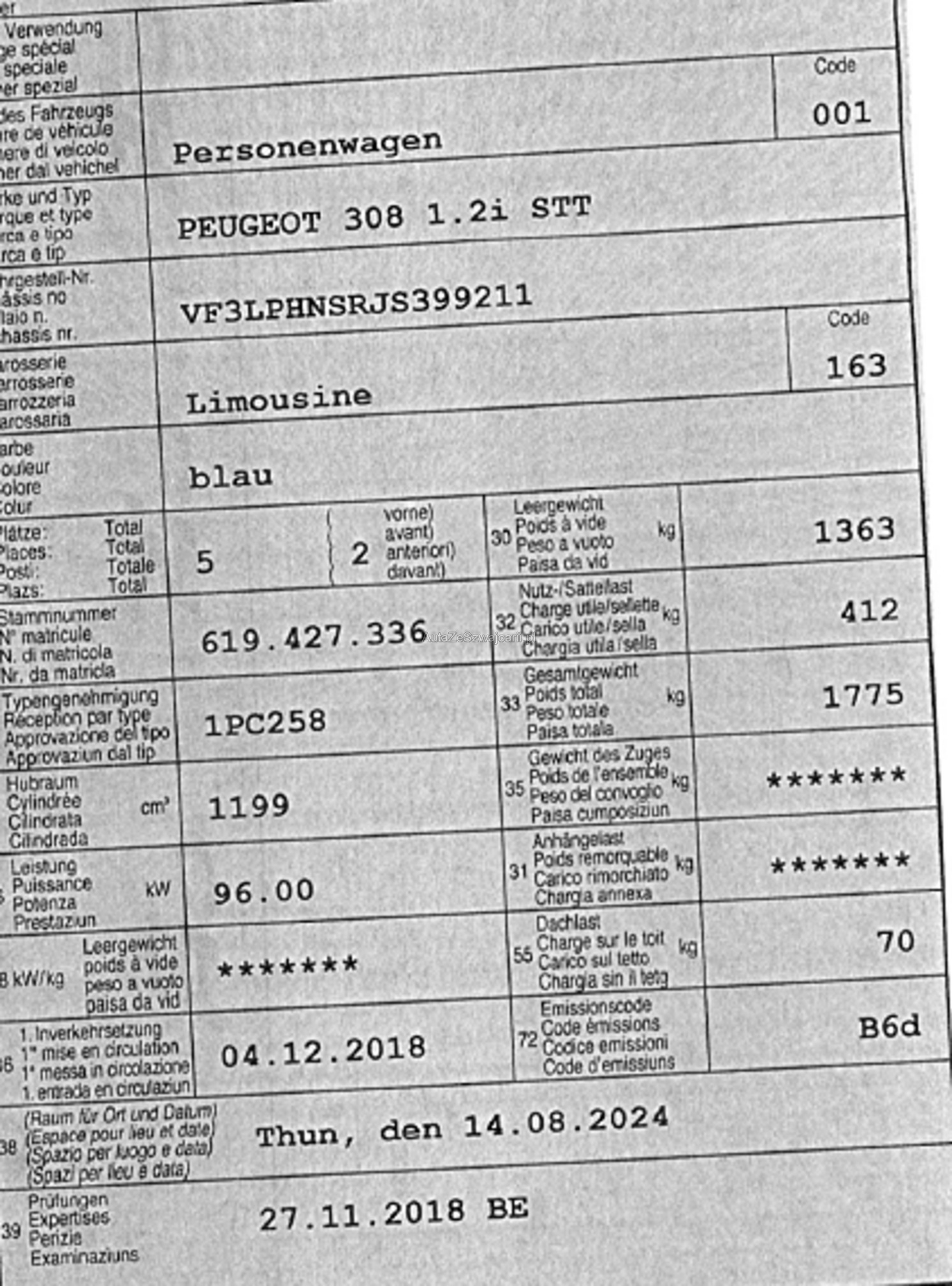 | Kommentar | Servicegepflegt, Zahnriemen wurde bereits ersetzt. Technisch guter Zustand, frisch ab Service. Diverse kleinere Schäden Karosserie gemäss Bilder. Abholung Innerhalb von 7 Tagen, danach fallen Platzgebühren von CHF 30.- / Tag an. |