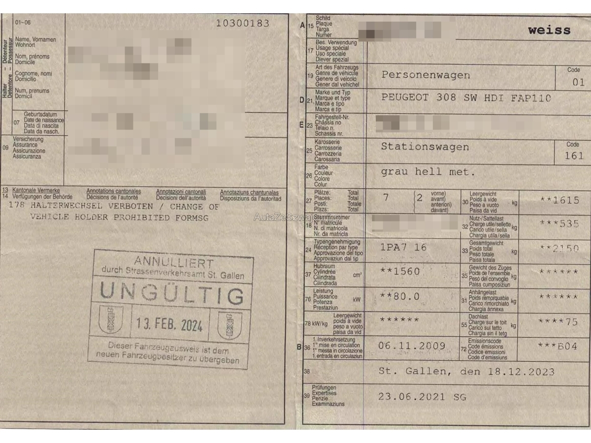 | Fahrzeugausweis | Vorhanden |