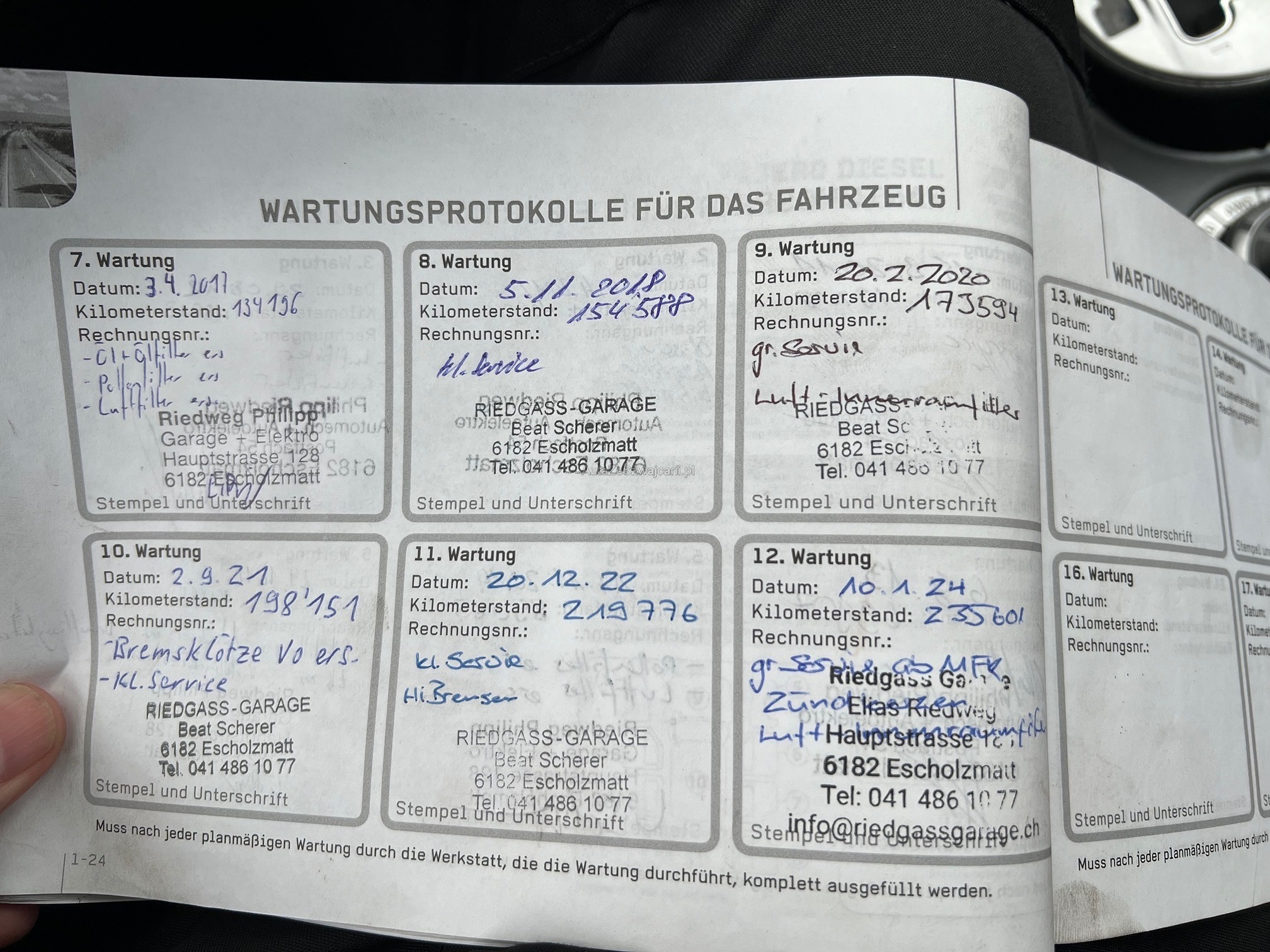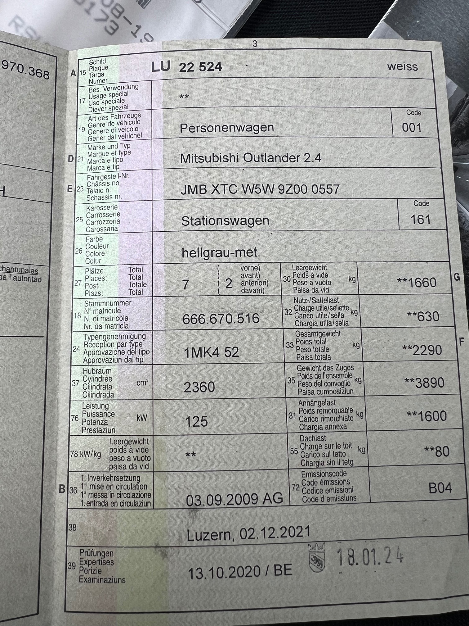 | Kommentar | - Es wurde KEIN vollständiger Werkstatttest durchgeführt - Fahrzeug wird für Export verkauft - Motor und Getriebe in Ordnung - Probefahrt: Geräusch Fahrwerk (ev. Koppelstangen und Radlager) - Steinschlag in Frontscheibe, KD hat nur Haftpflichtversicherung - Diverse Gebrauchsspuren gemäss Bilder - Armaturenbrett ist zerkratzt und Lenkrad stark abgenutzt siehe Bild - Anhängerkupplung vorhanden |