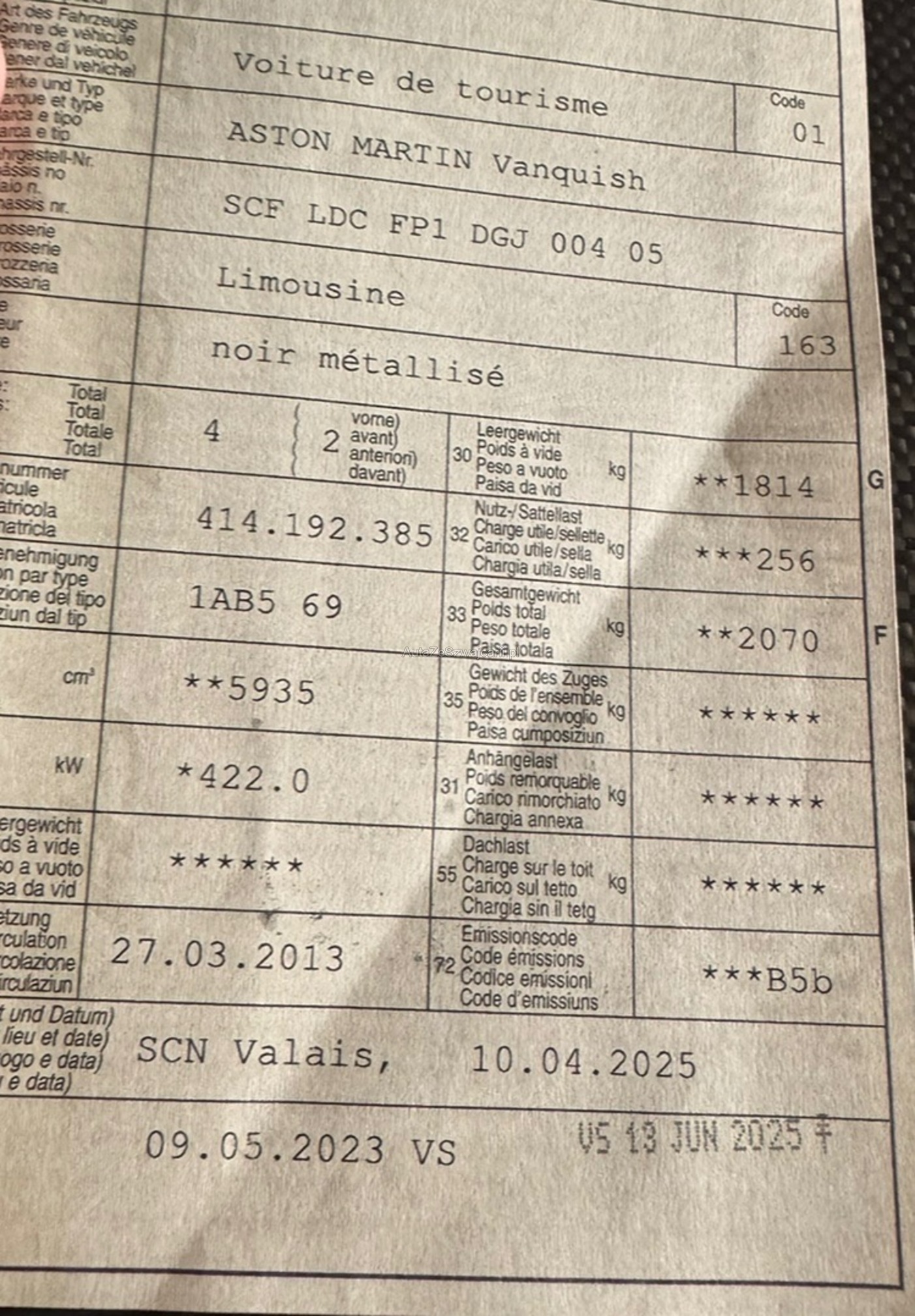 | Kommentar | Aston Martin Vanquish V12 Komplett Carbon Karrosserie Motor Getriebe laufen einwandfrei Beim Scheibenwischbehälter ist der Sensor defekt. Waschanlage für Scheiben funktioniert jedoch. Leder bei Heckscheibe ( 3-Bremssleuchte) hebt isch leicht Km entsprechend Gebrauchsspuren, Steinschläge und Kratzter. Serviceheft vorhanden , nicht vollständig Wir führen keine umfassenden Prüfungen oder Kontrollen sämtlicher Fahrzeugfunktionen durch. Offensichtliche Mängel werden, soweit erkennbar, benannt, jedoch unterziehen wir das Fahrzeug keinem detaillierten Werkstatttest. Daher übernehmen wir keine Haftung für sichtbare oder unsichtbare Mängel. Nachverhandlungen, jegliche Garantie, Wandelung und Minderung werden ausgeschlossen Muss innert 7 Tagen abgeholt werden Bar Zahlung bevorzugt |
