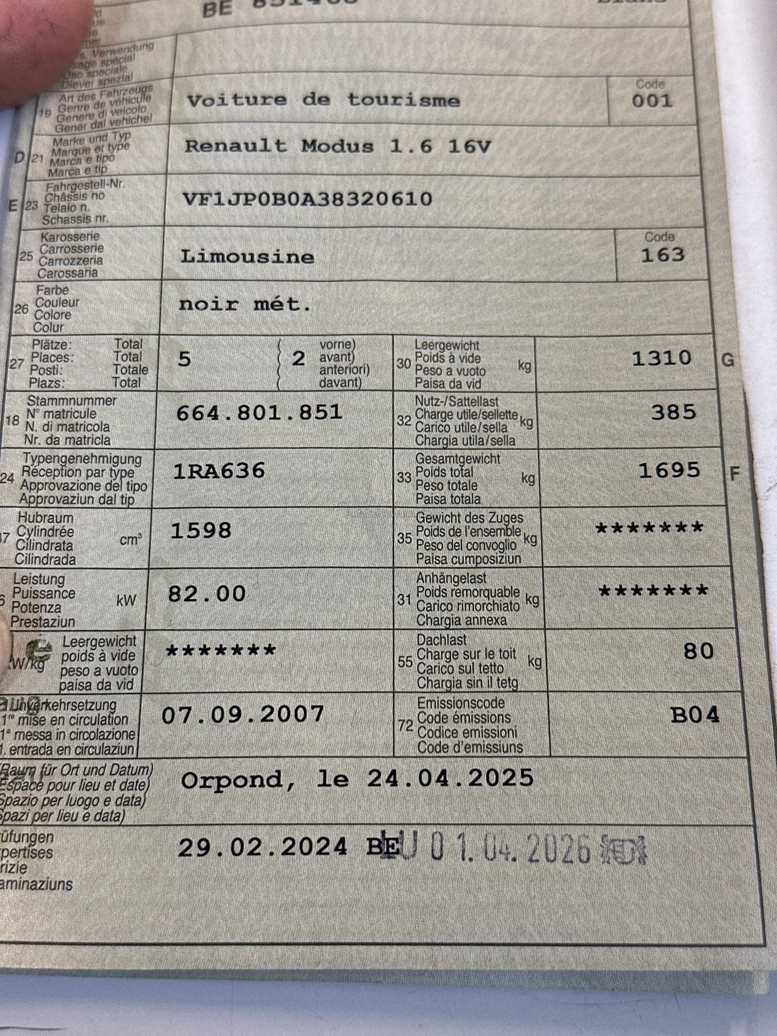 | VIN | VF1XXX |