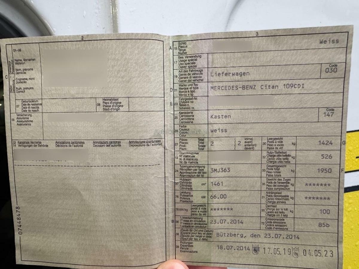 | Fahrzeugausweis | Vorhanden |