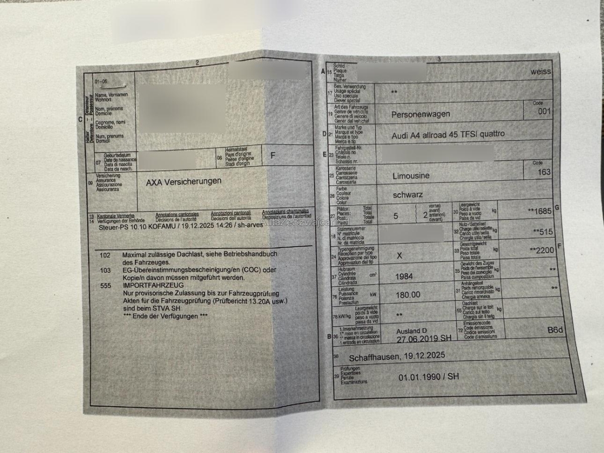 | Fahrzeugausweis | Vorhanden |